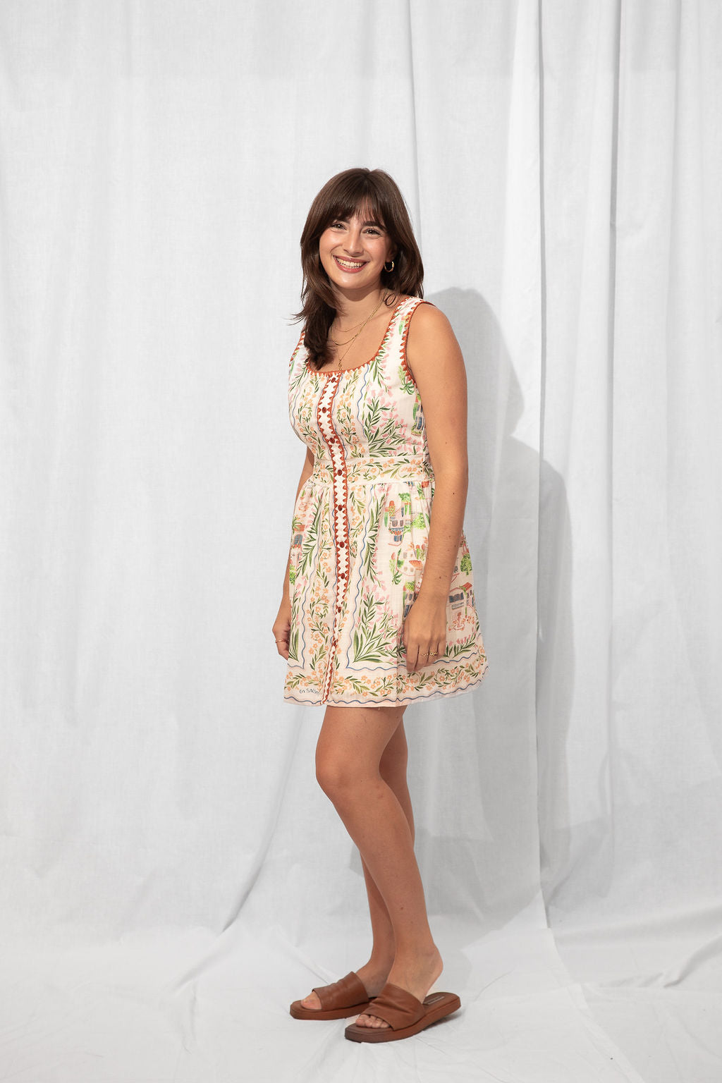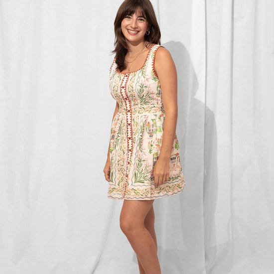 This square-neck mini dress has the sweetest stitch details and an easy, breezy vibe. Perfect for strolling cobblestone streets, lingering over coffee, or packing for your next getaway. Light, airy, and effortlessly chic.