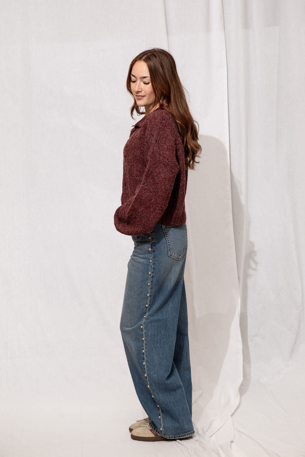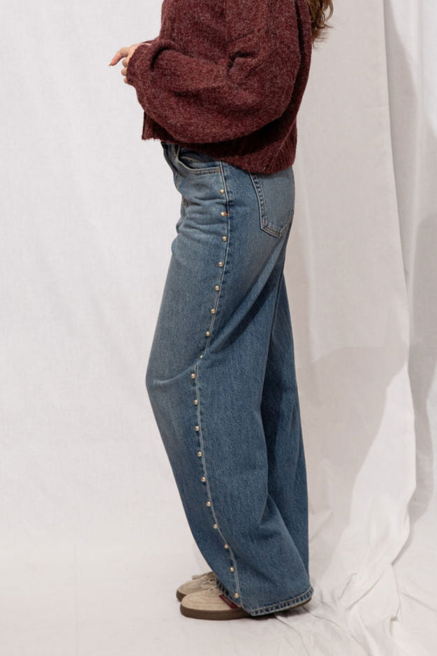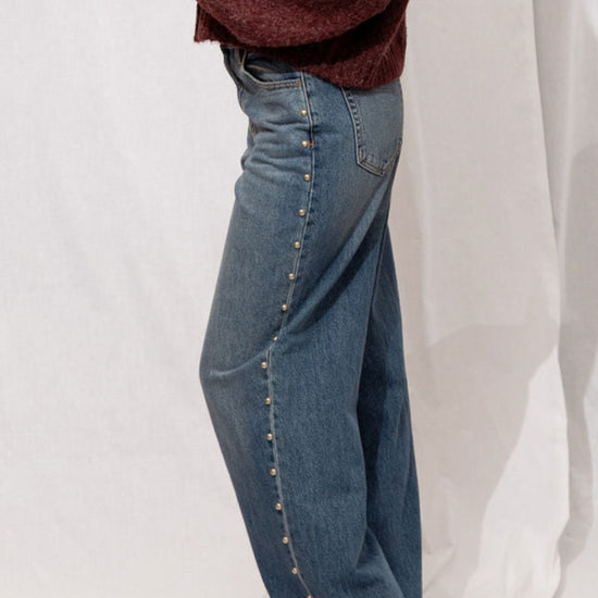 The cool girl denim of the season 😎 With a 32" inseam and subtle side stud details, Alix is giving just the right amount of edge while still being totally wearable. Pair with your fave tee or a sleek blazer—she’s got range.