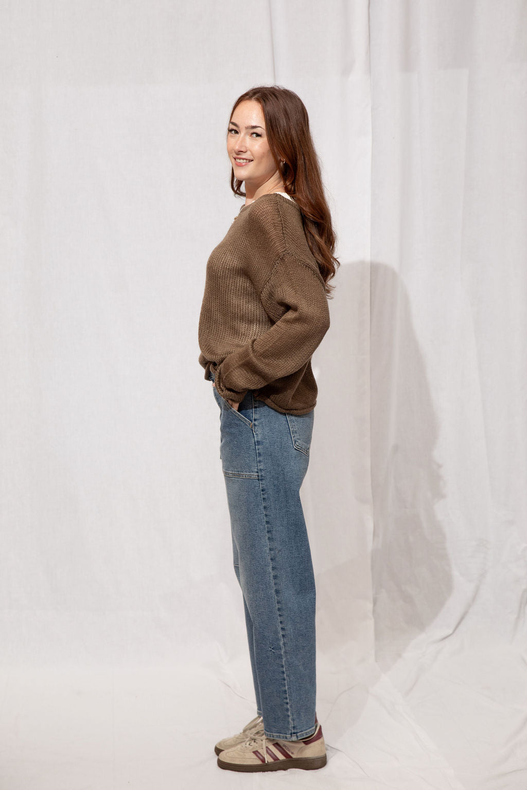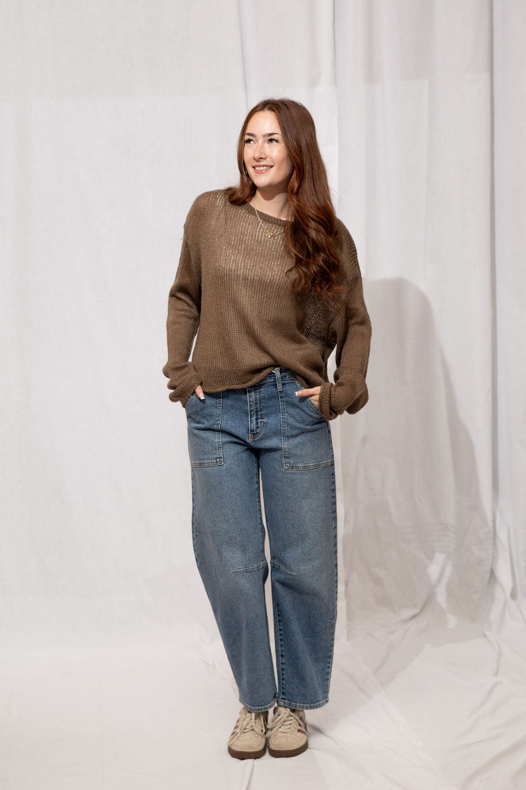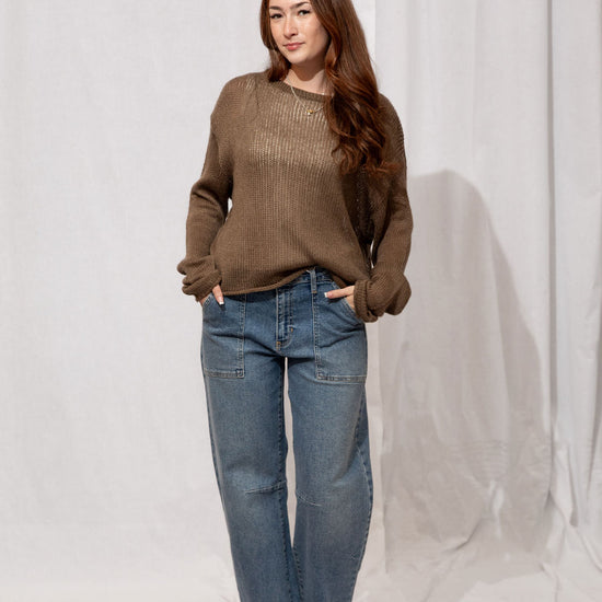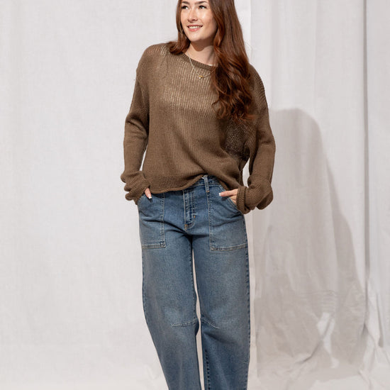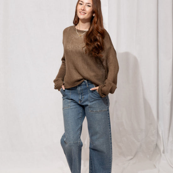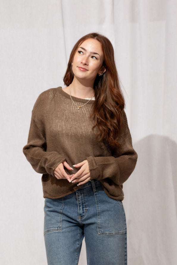 Your new layering BFF 🍂 Super lightweight and open-knit, Alyx is that perfect olive shade that goes with everything. Toss it over a tee, a dress, or your fave jeans—effortless, cozy, and just right for fall vibes. Perfectly paired with a faux suede mini skirt like the Darcy or your go to denim, like the Cuffed Palazzo's.