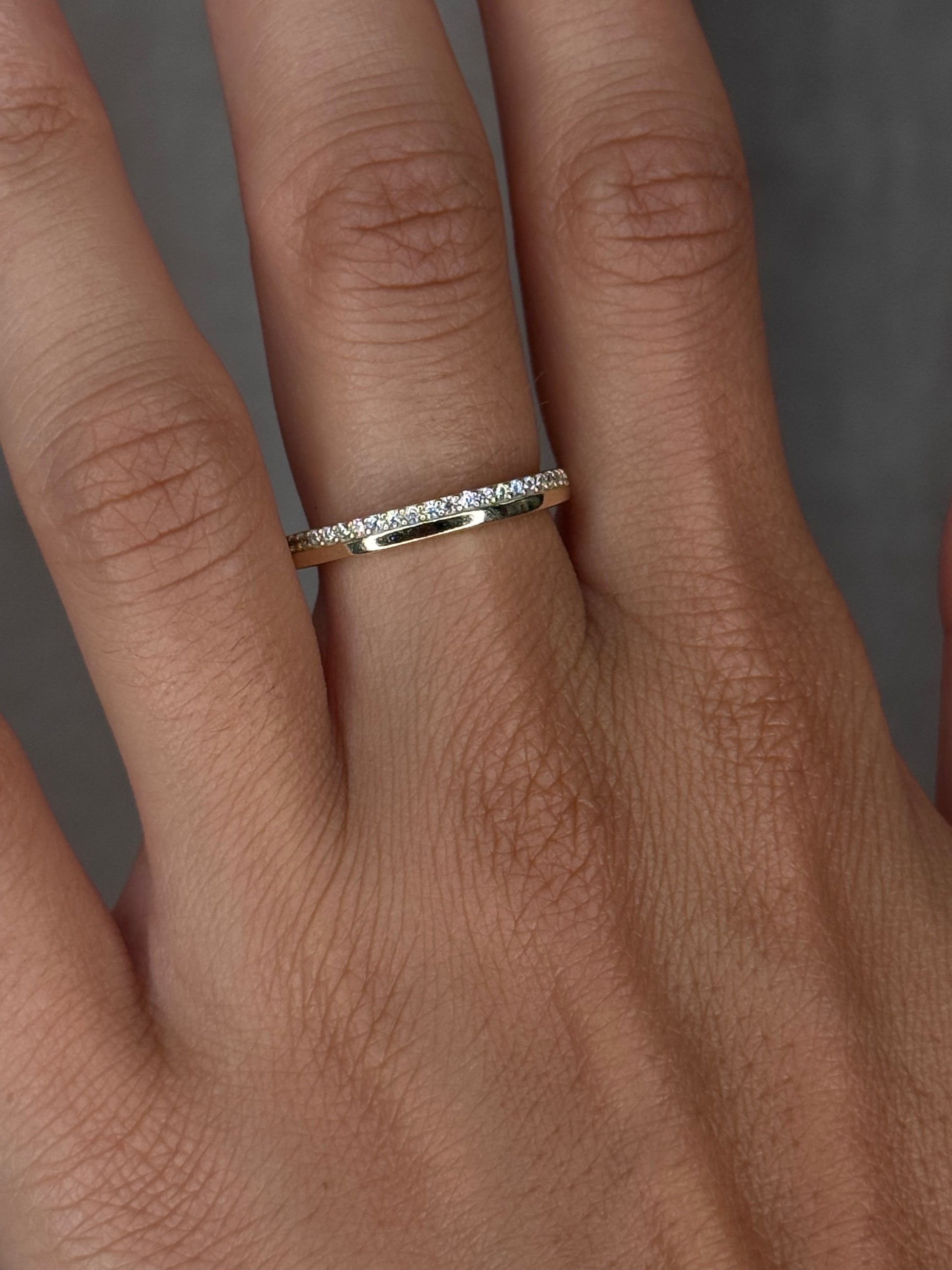 Materials: 14 carat gold over sterling silver- stone is cubic zirconiz. With its delicate nature, be careful while wearing as this style can bend if put under light pressure.