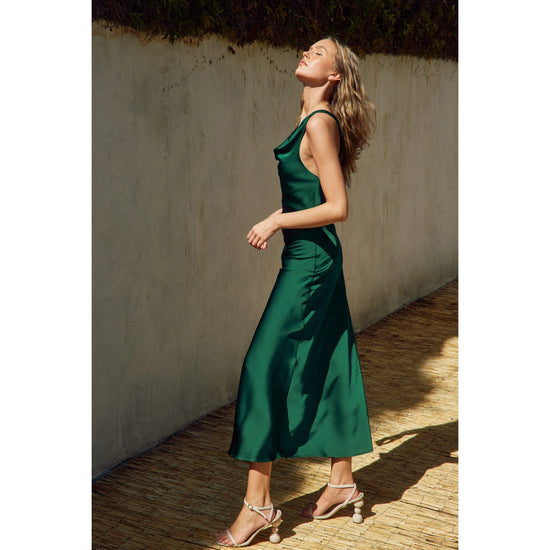 Slip into something effortlessly stunning. This satin maxi features a drapey cowl neckline and open back with twisted cord straps that cross just right — elegant with a touch of drama. Available in deep Hunter Green or rich Brick, it’s a showstopper for any event on your fall calendar. Flowy, flattering, and made to turn heads.