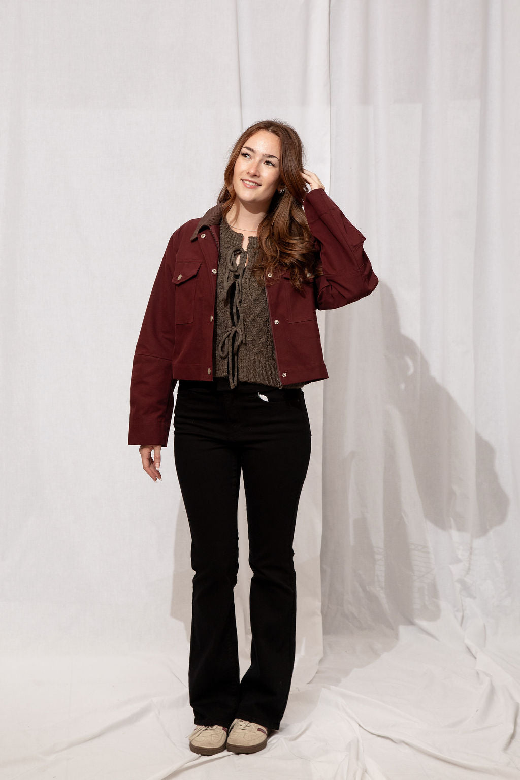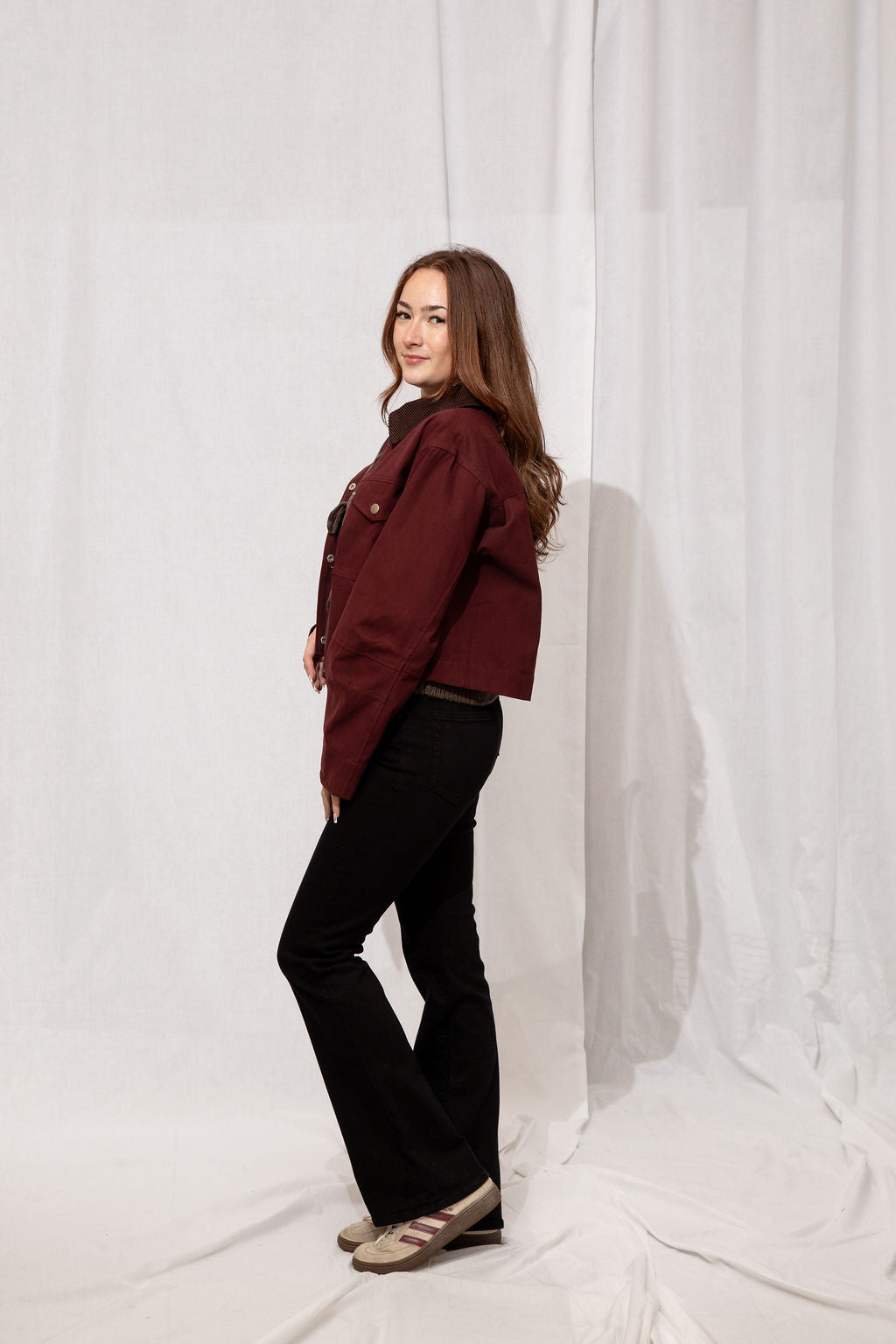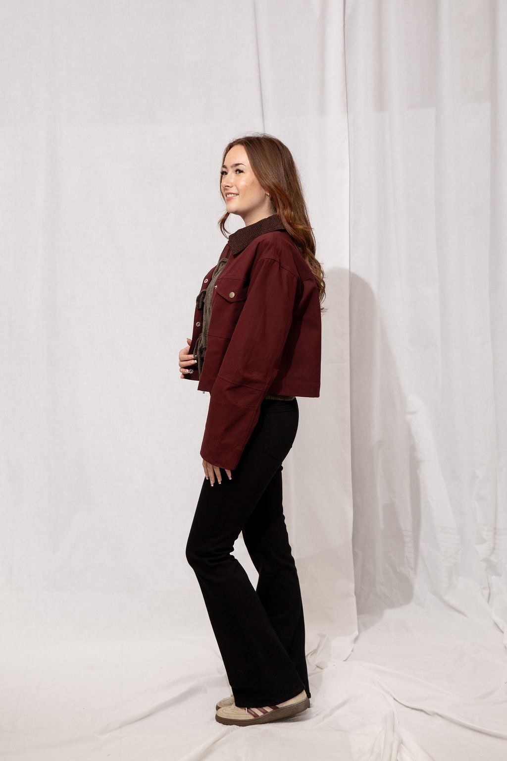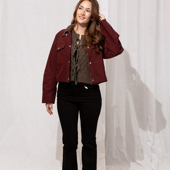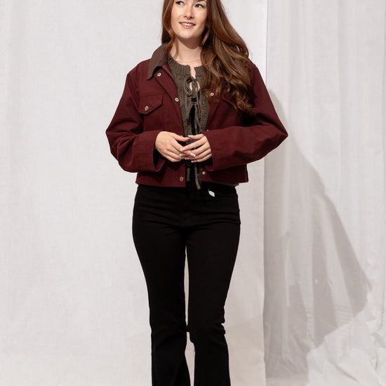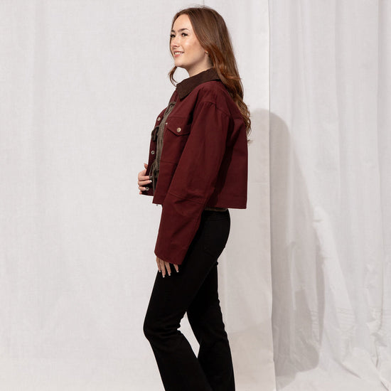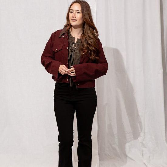 Your fall layering hero 🍂 Slightly cropped with a rich burgundy body and brown corduroy collar, Boone is that goes-with-everything jacket you’ll grab on repeat. 100% cotton, classic, and effortlessly cool—basically the definition of autumn style.