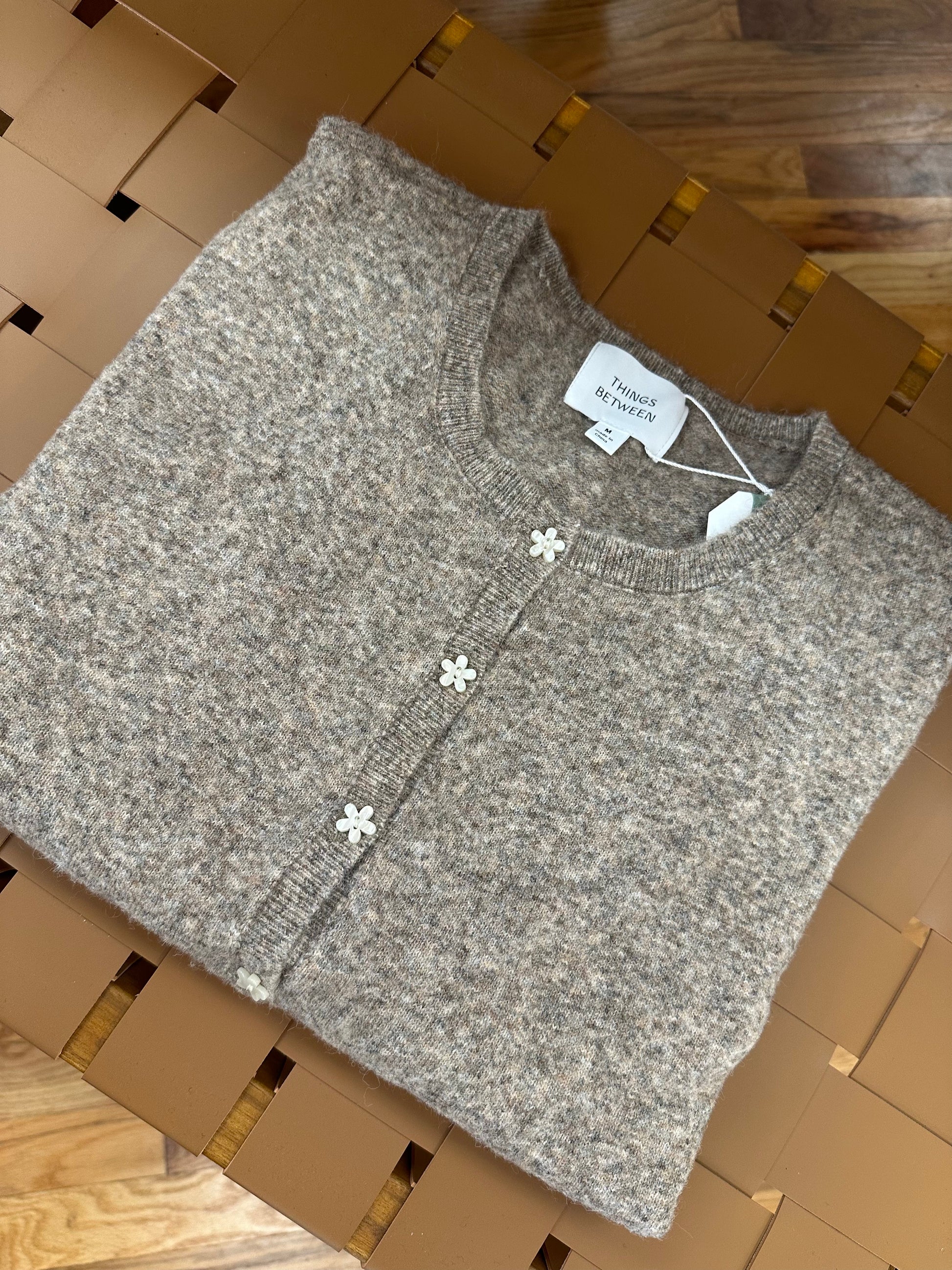Your new cozy crush. Camille is a super soft cardigan that’s all about the details—like the sweetest little flower-shaped buttons. She’s warm, cute, and ready for anything. 🌸