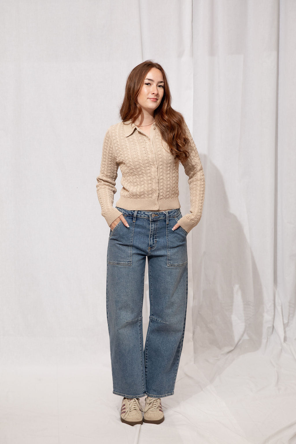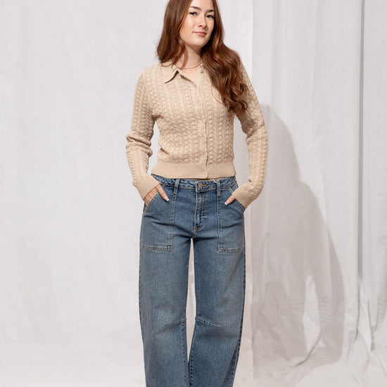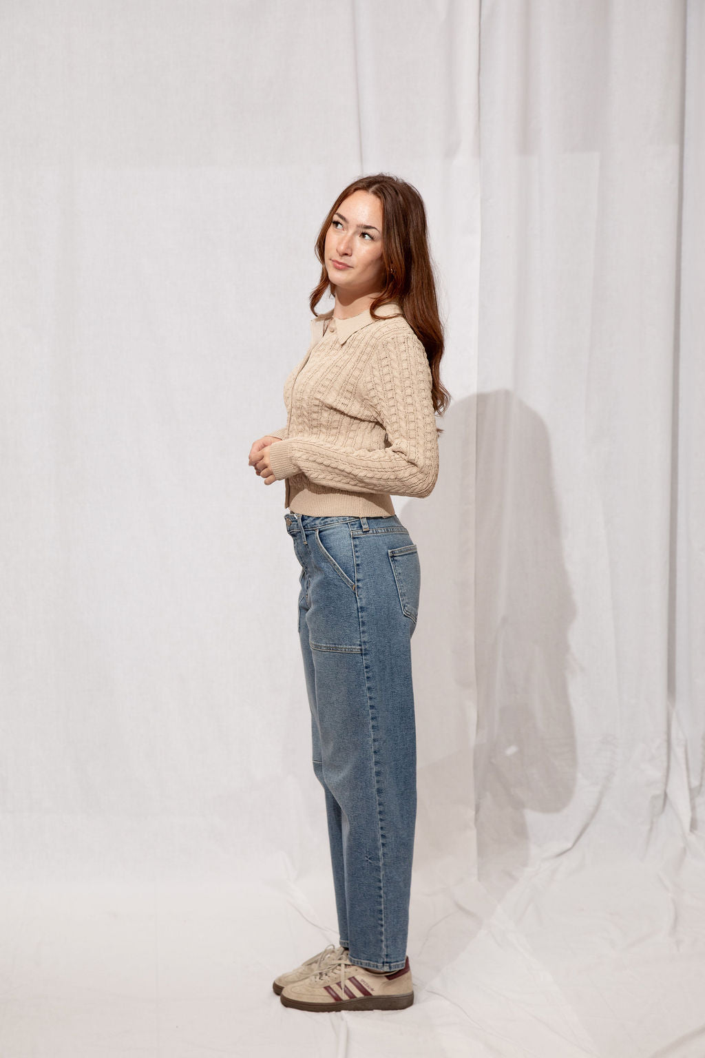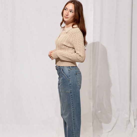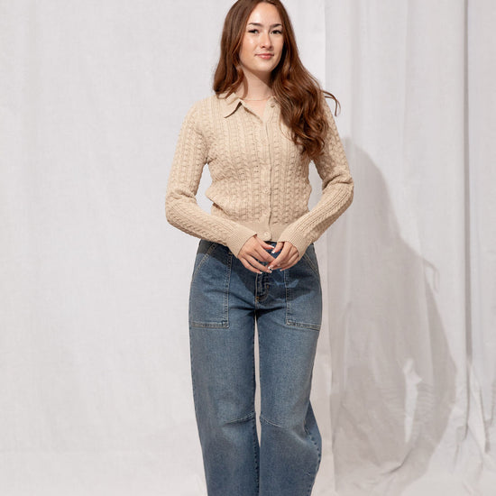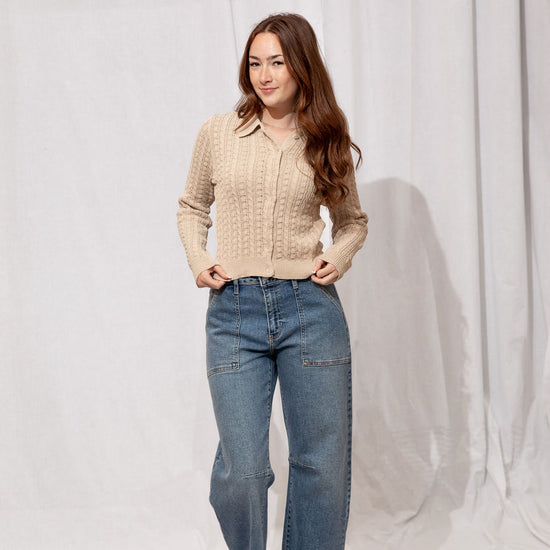 Cozy meets chic in this small cable knit beauty 🌾 Warm sand, collared, and made from 100% recycled polyester, Cari is perfect for layering over jeans for brunch, coffee runs, or a little weekend shopping spree with your girls.