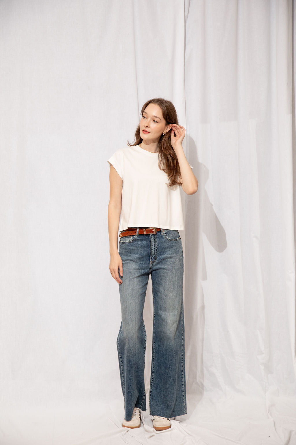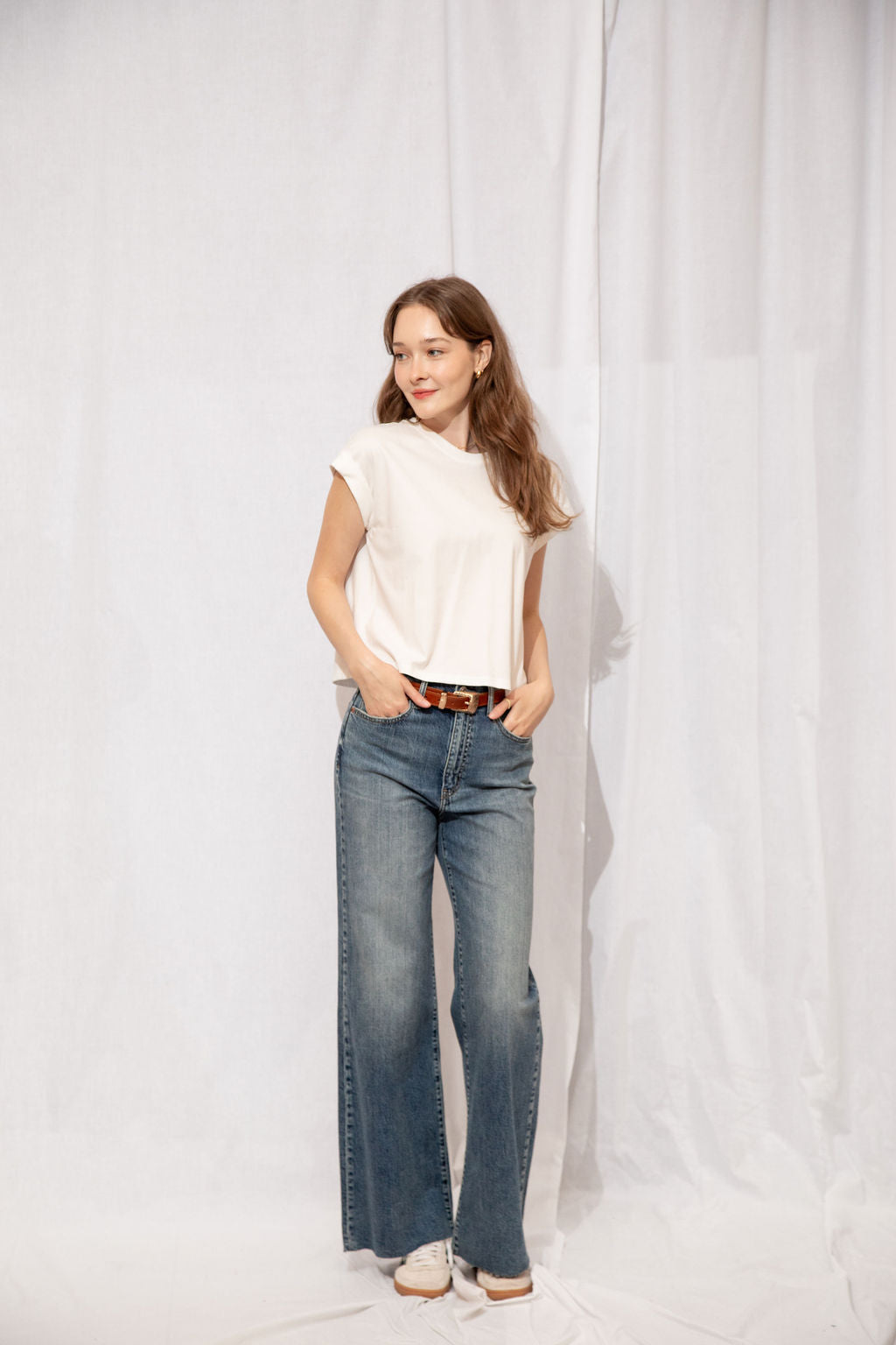 Introducing our best-selling Classic Boxy Tee, a staple piece for your everyday wardrobe. This t-shirt is made with a great cotton weight and thickness, ensuring that it's not see-through like other tees on the market. Its perfect cropped fit is flattering on all body types, and the 100% cotton material makes it comfortable to wear all day long. Whether you're running errands or lounging at home, this Classic Boxy Tee is the perfect addition to your casual yet stylish outfit.