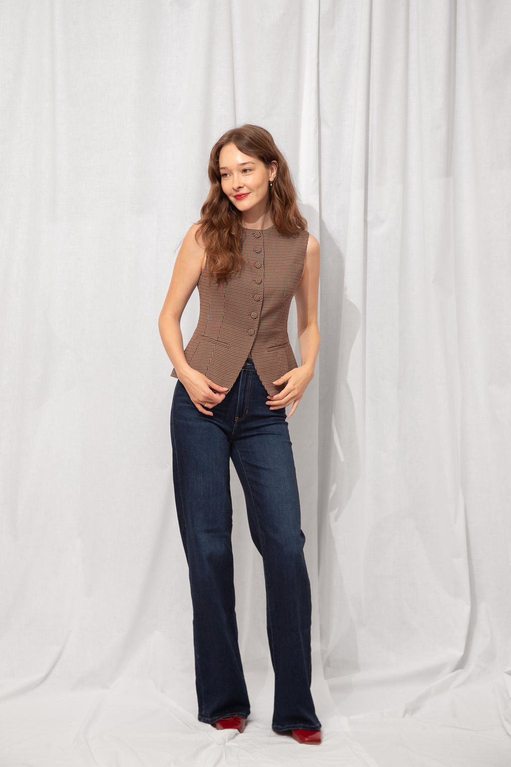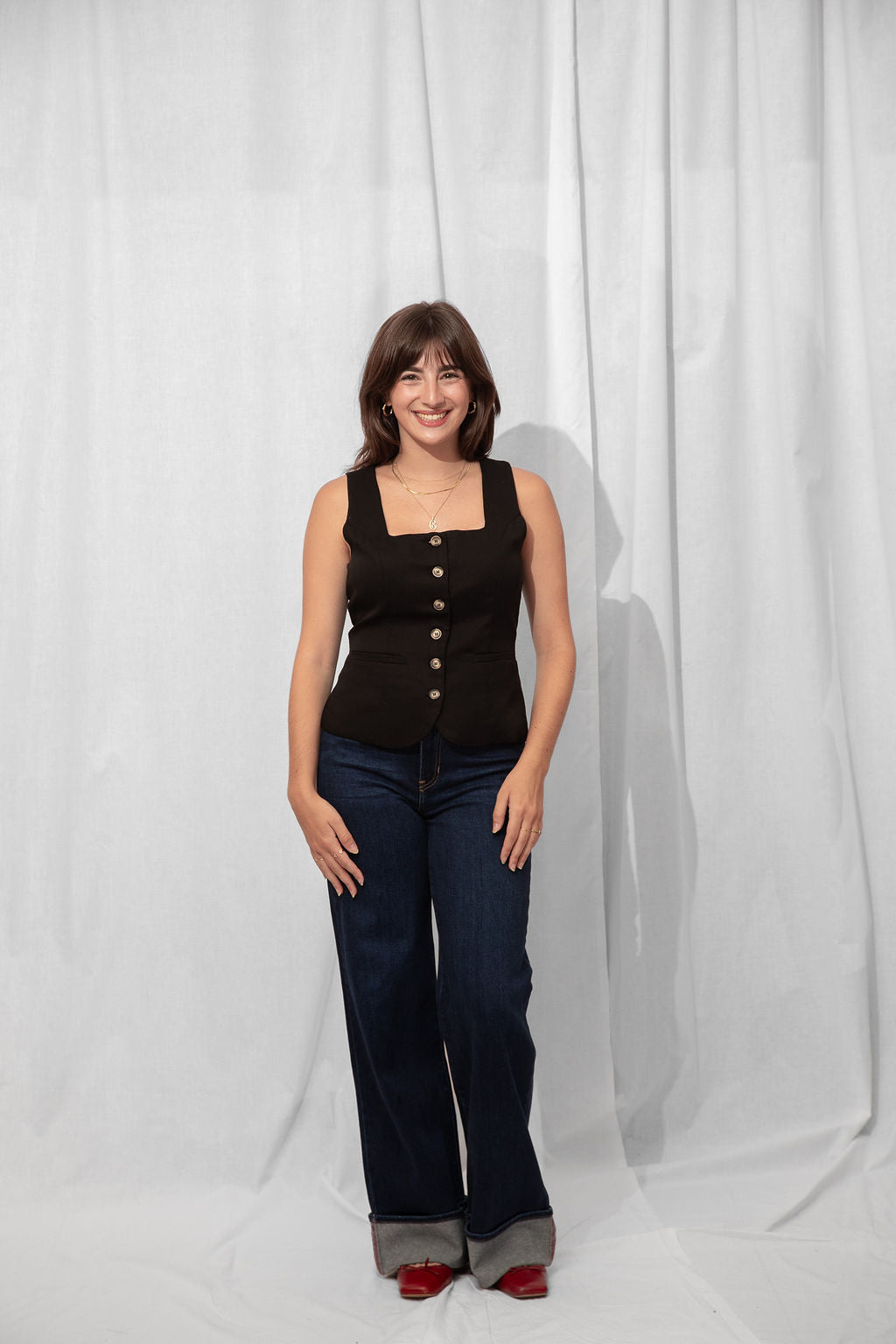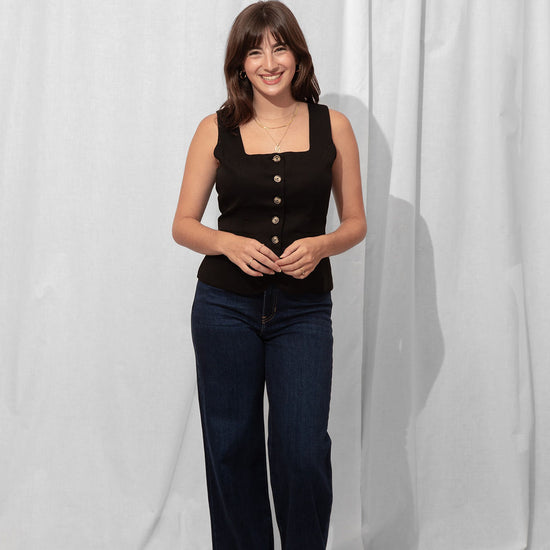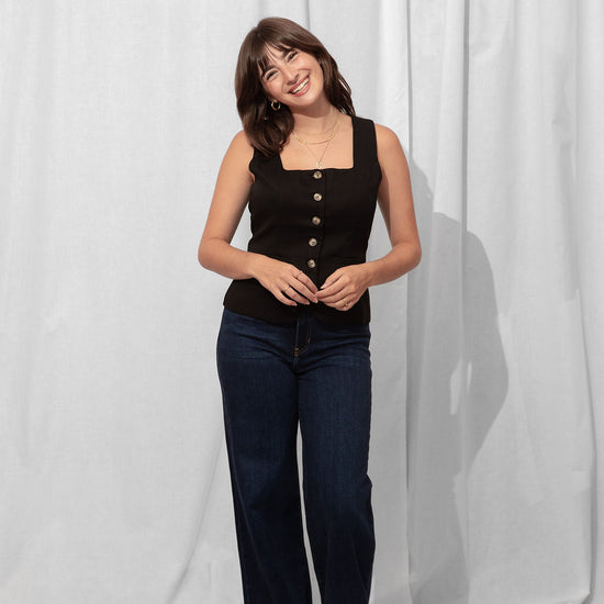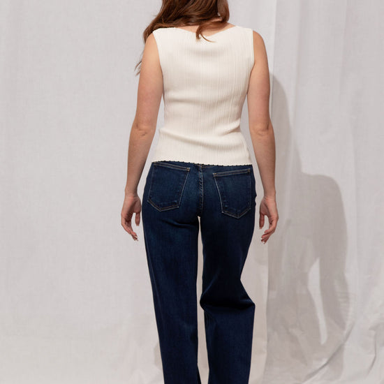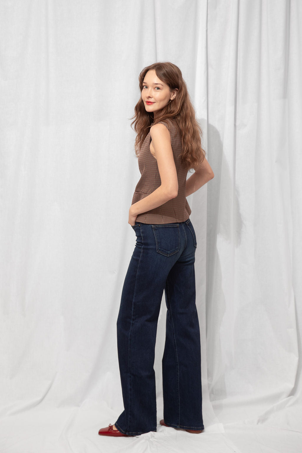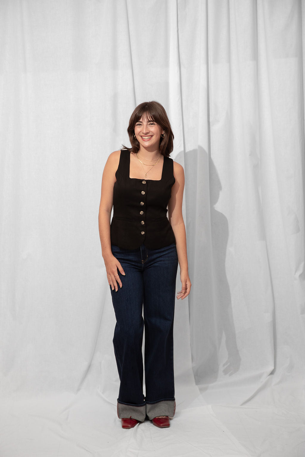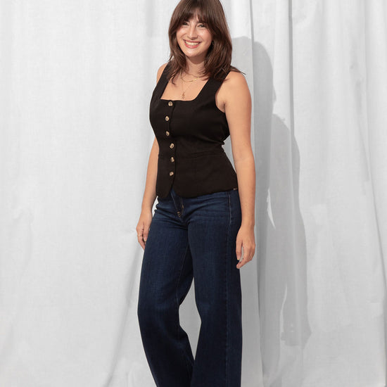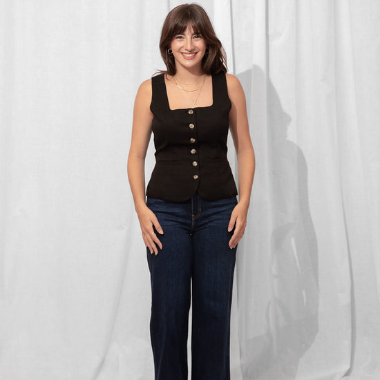 For the Tall girls- Nicole is wearing the Dark Denim with the cuff fully dropped. Drop the cuff for a full length long pant. *You can DIY or ask us for about our partnership with Dearborne Denim for the perfect customized length for only $5!