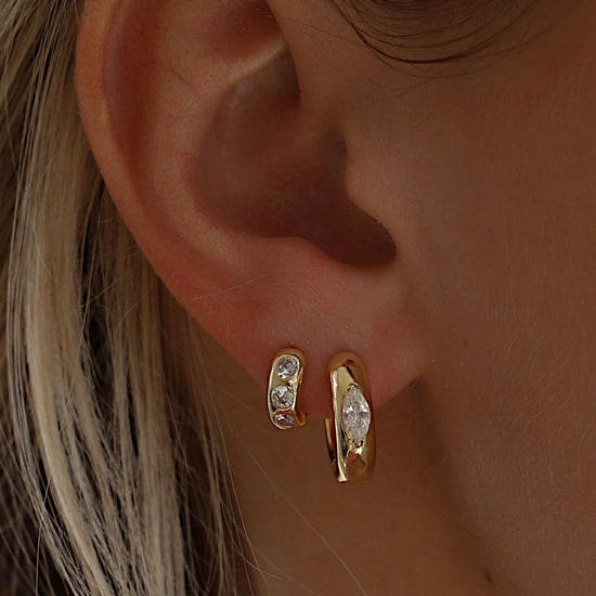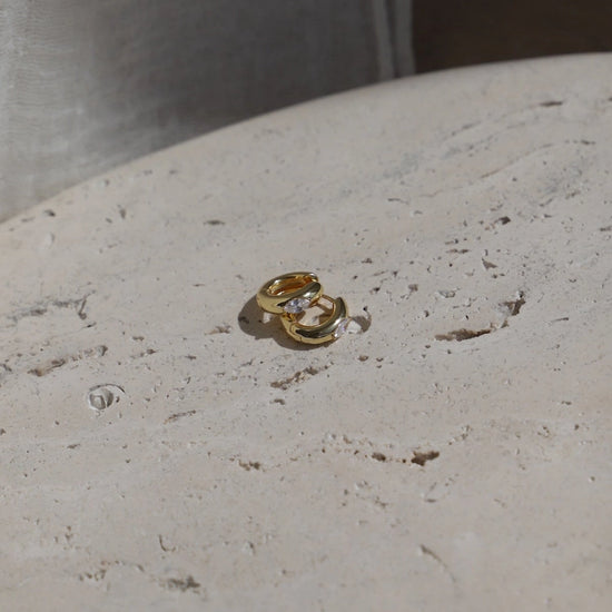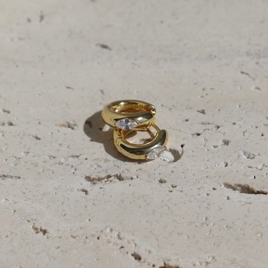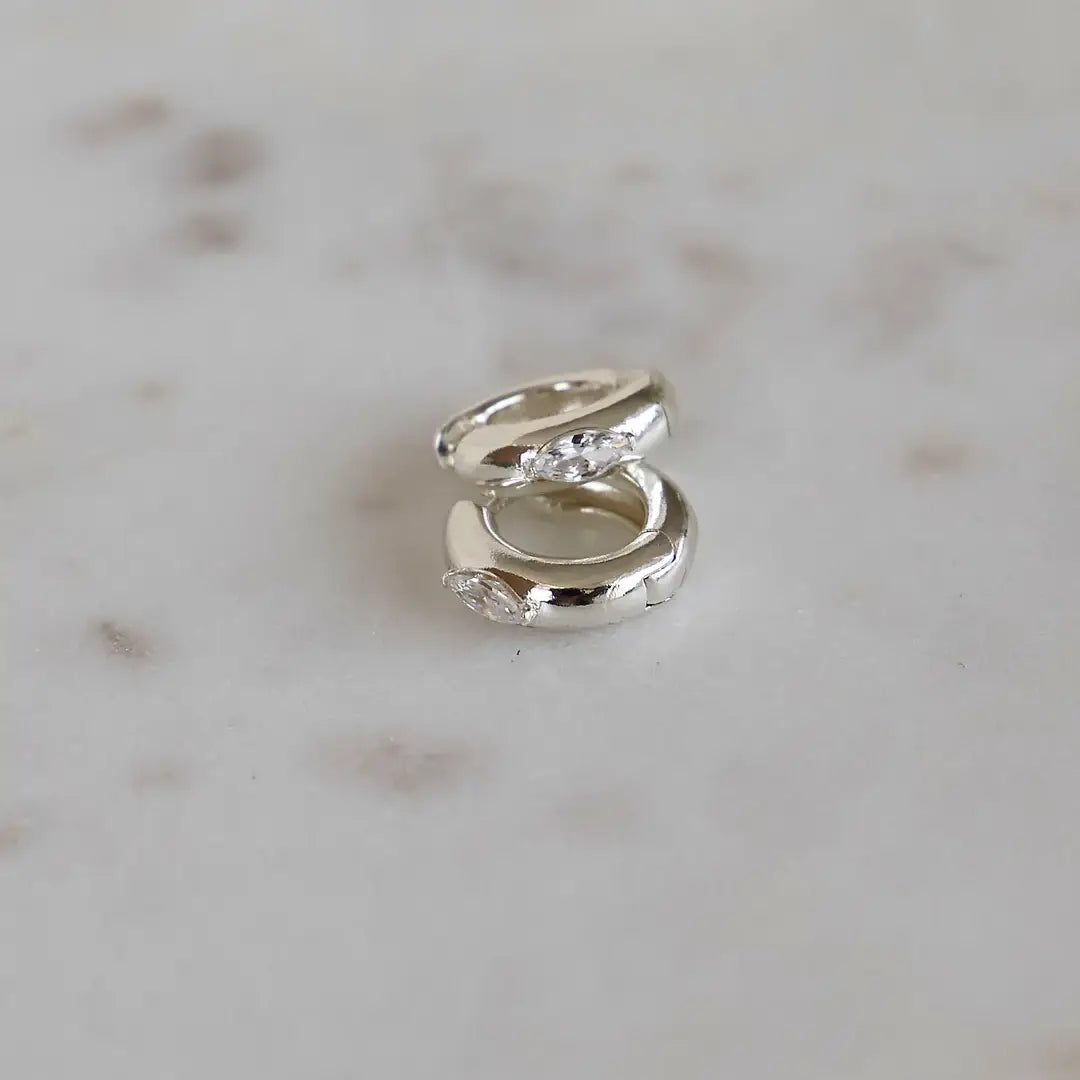 These bold, thick hoops feature a sleek marquise-cut CZ that sparkles just right—perfect for adding a little edge to any look.