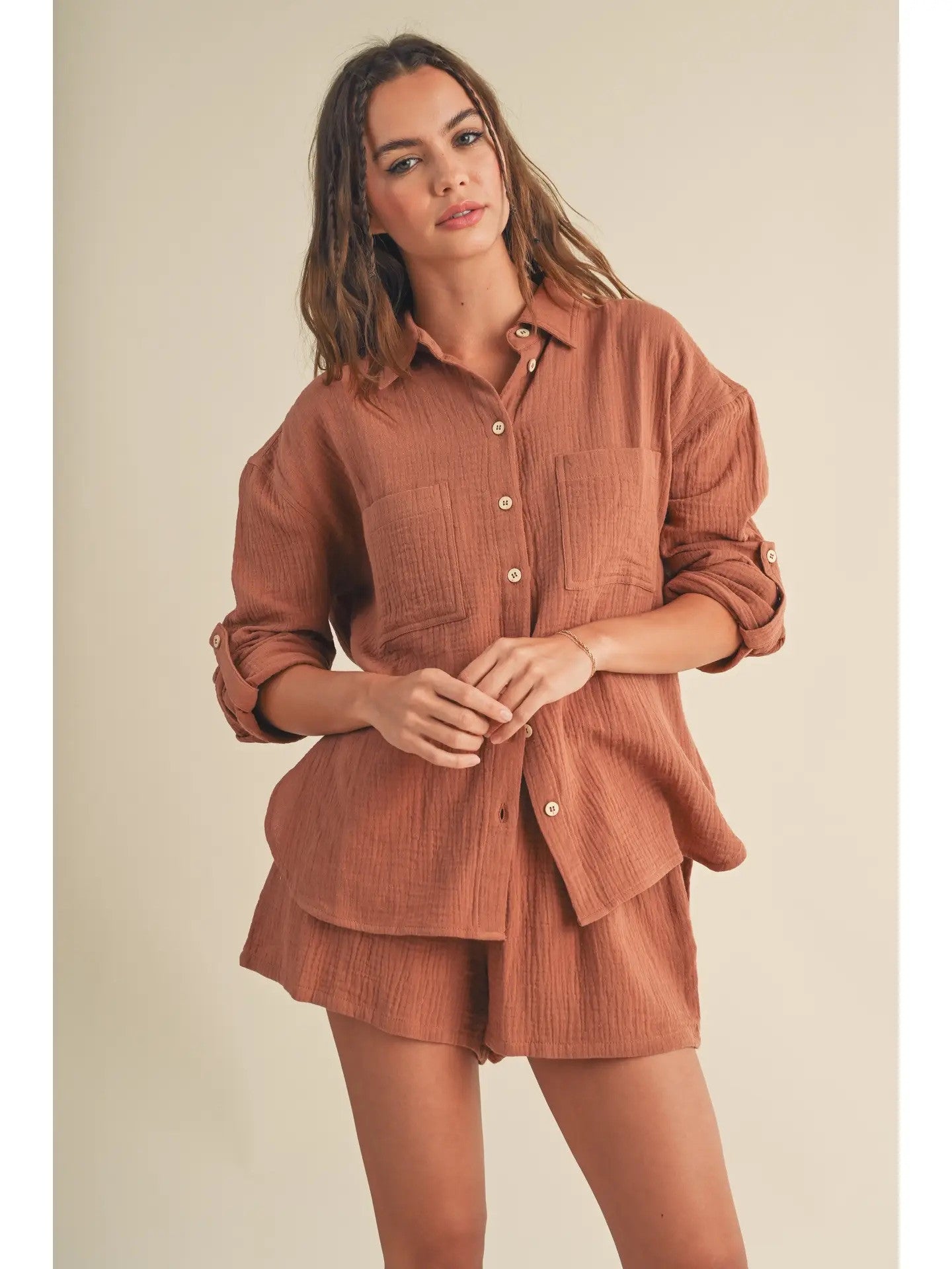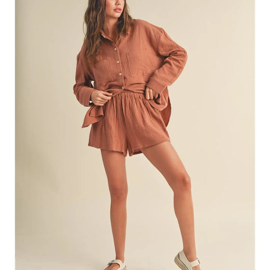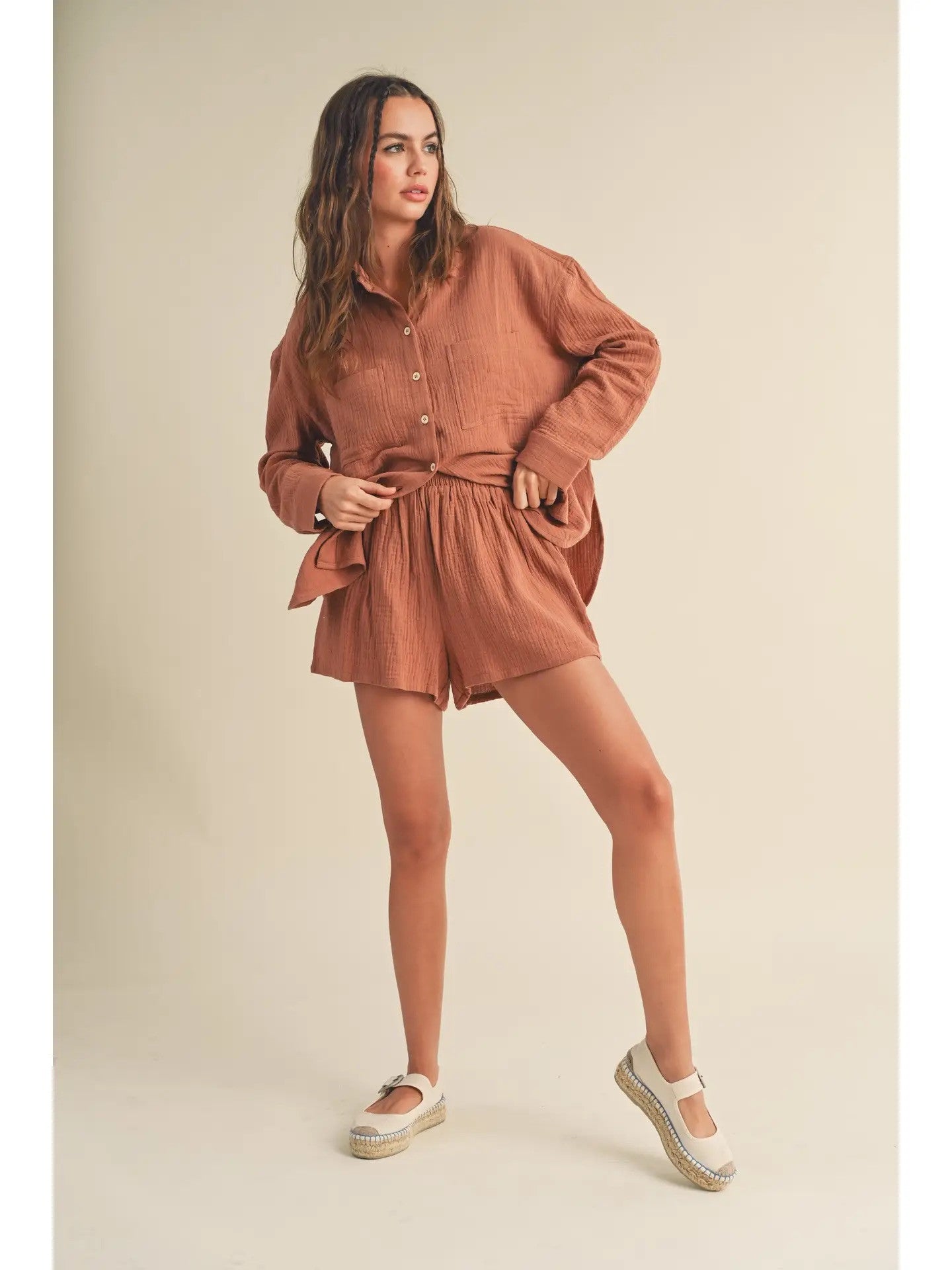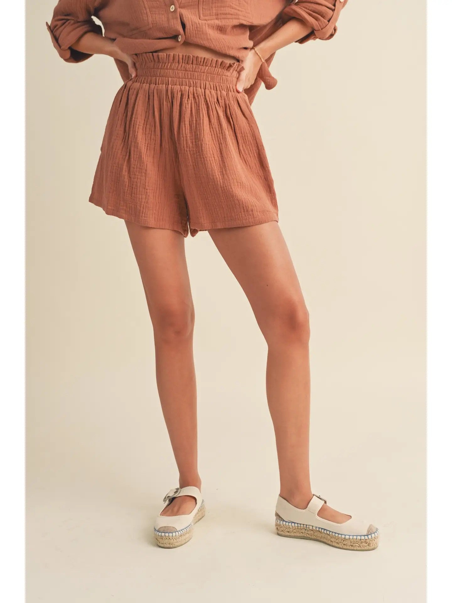 Introducing the perfect addition to your summer wardrobe - the Ginger Shorts! Made from lightweight double gauze fabric in 100% cotton, designed for the ultimate comfort and breathability.