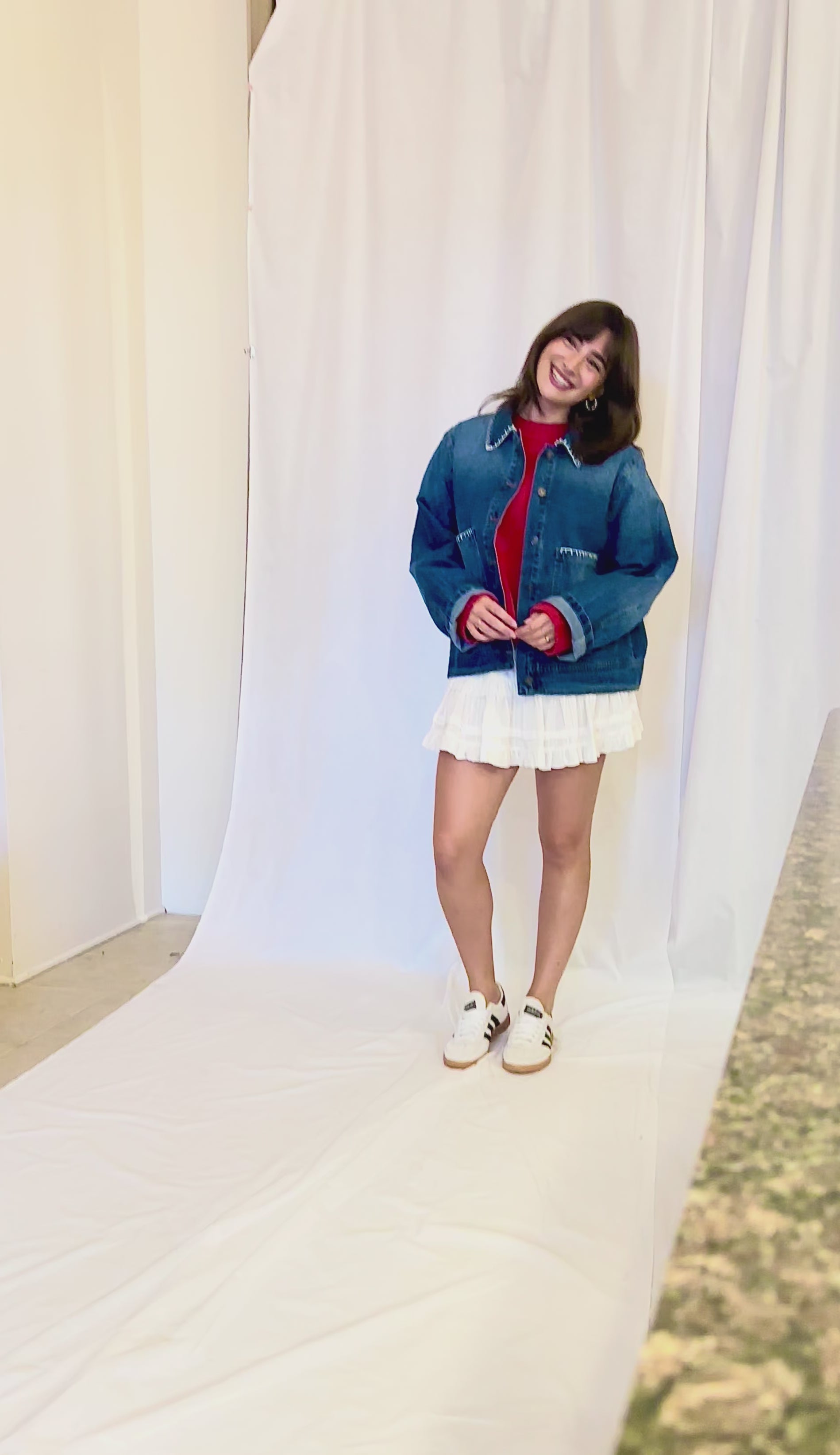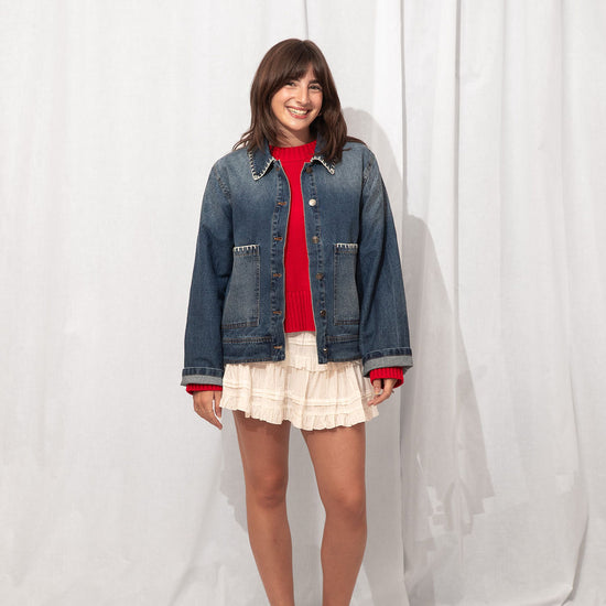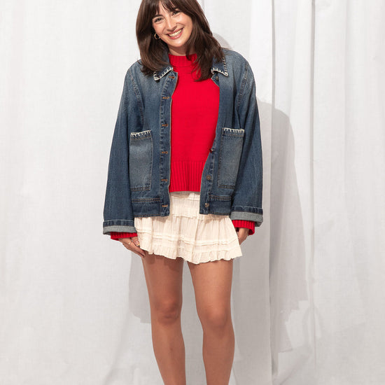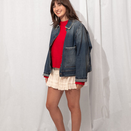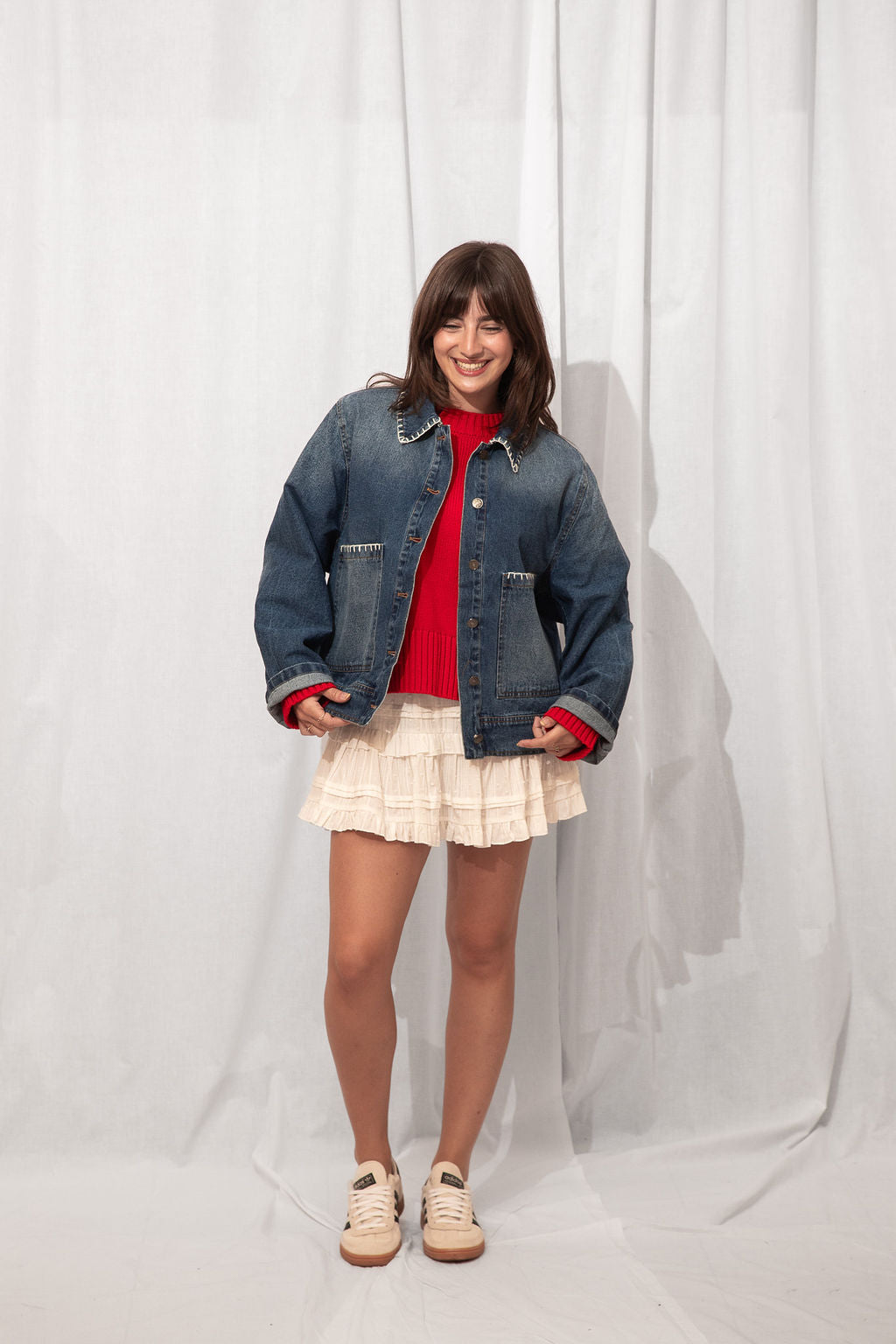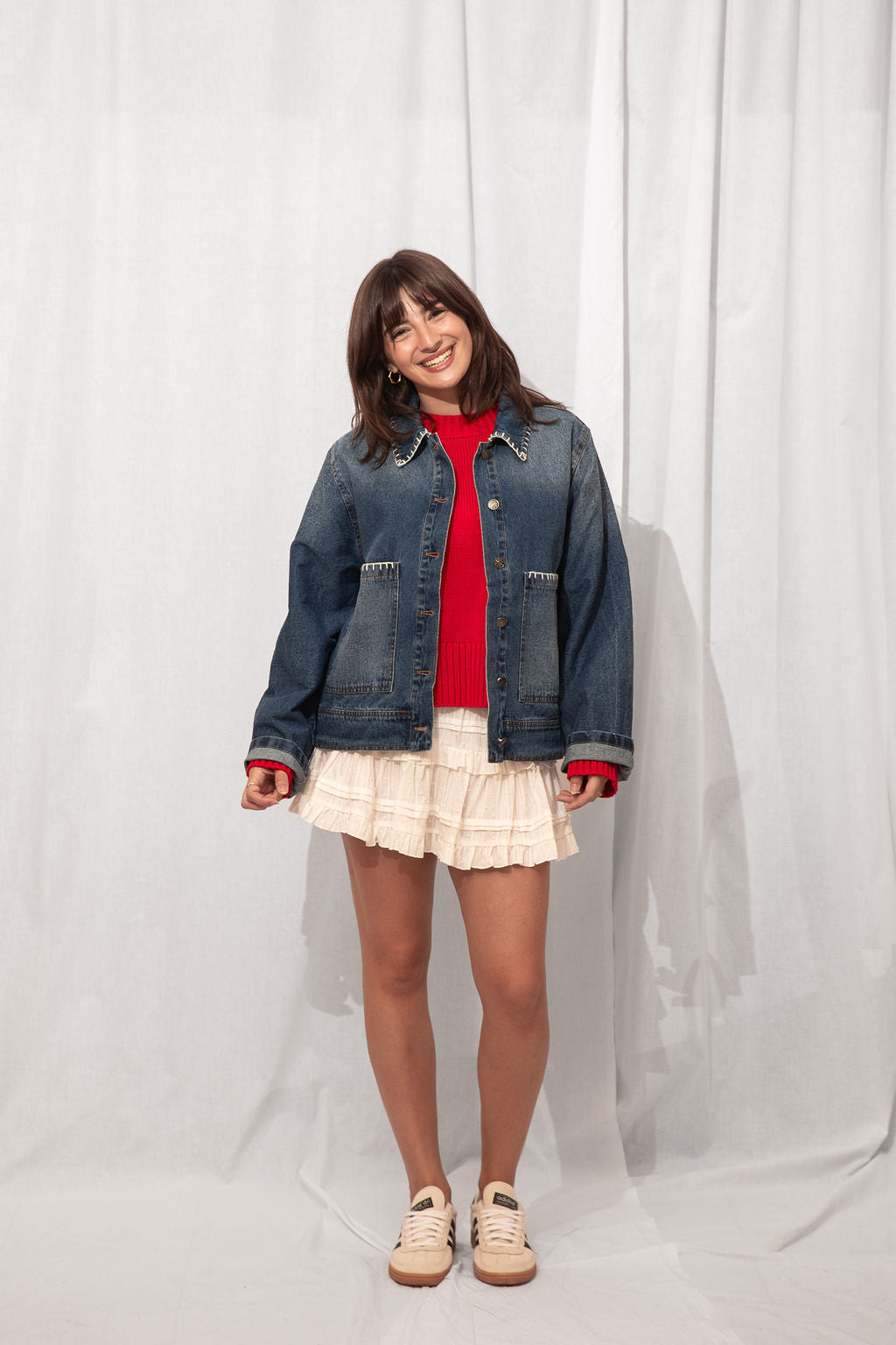 The Hazel is your new everyday denim layer—with a twist. This oversized denim jacket features a standout blanket stitch in creamy thread for that little something extra. Think timeless meets artsy cool.🧵💙