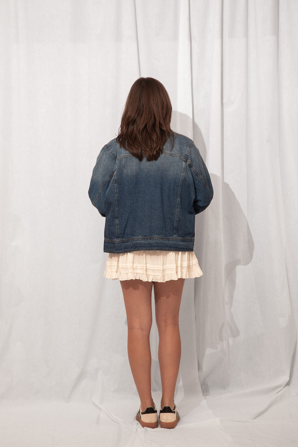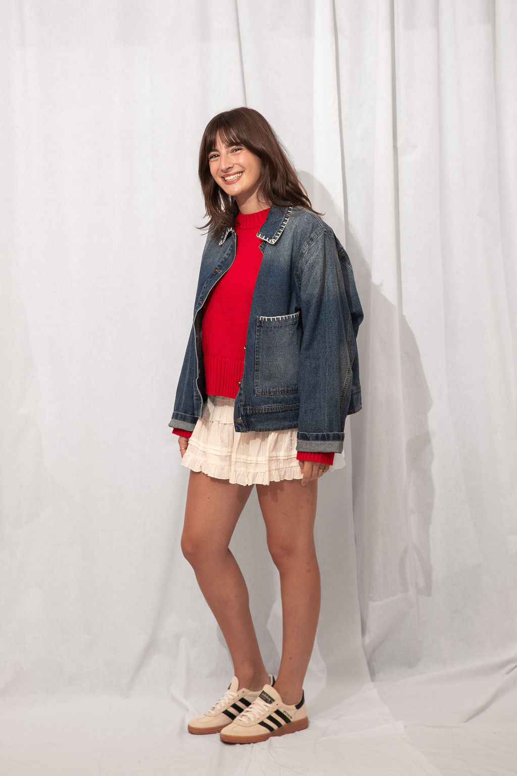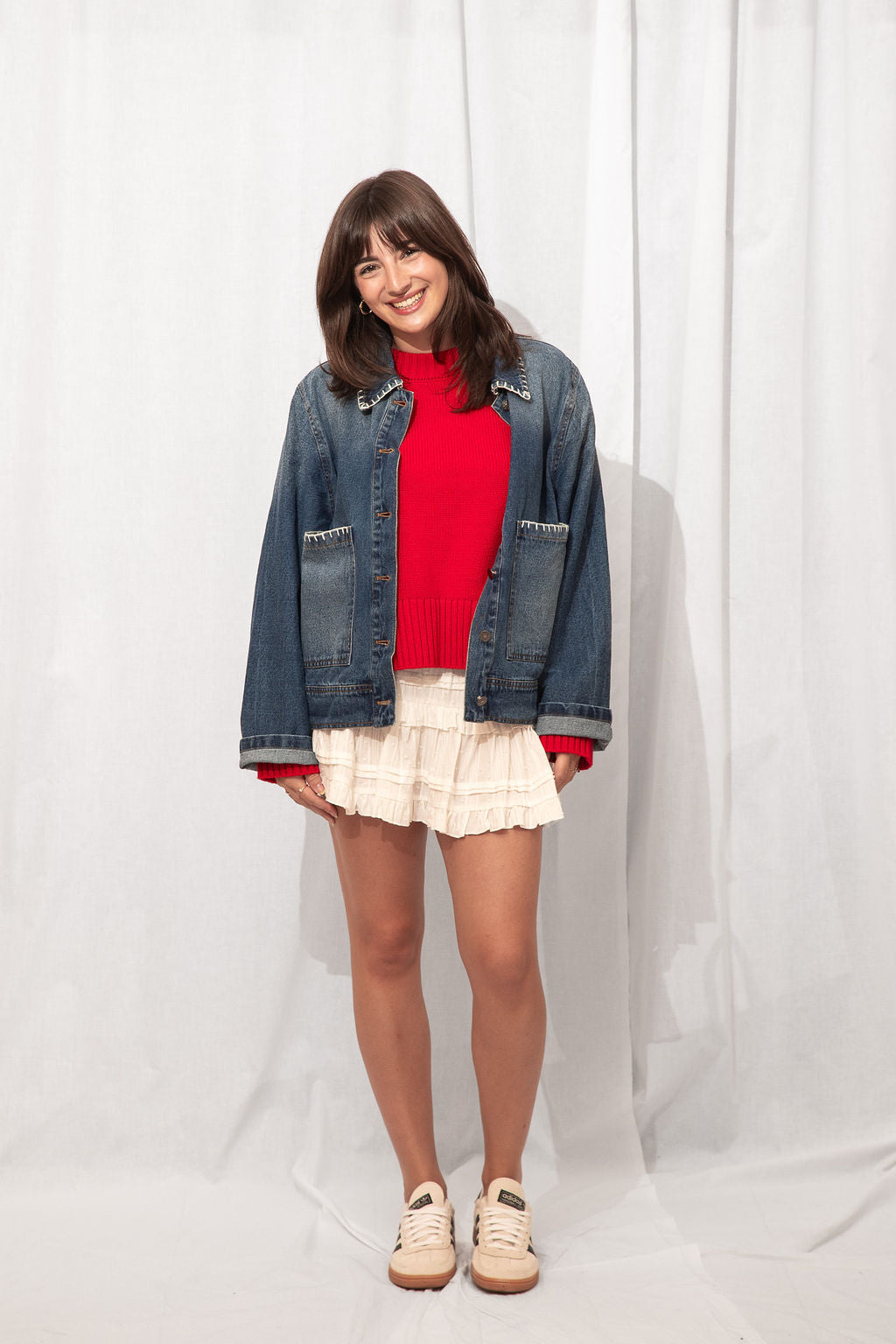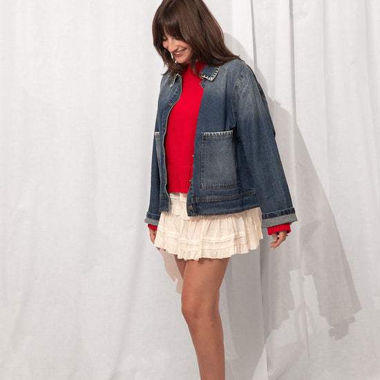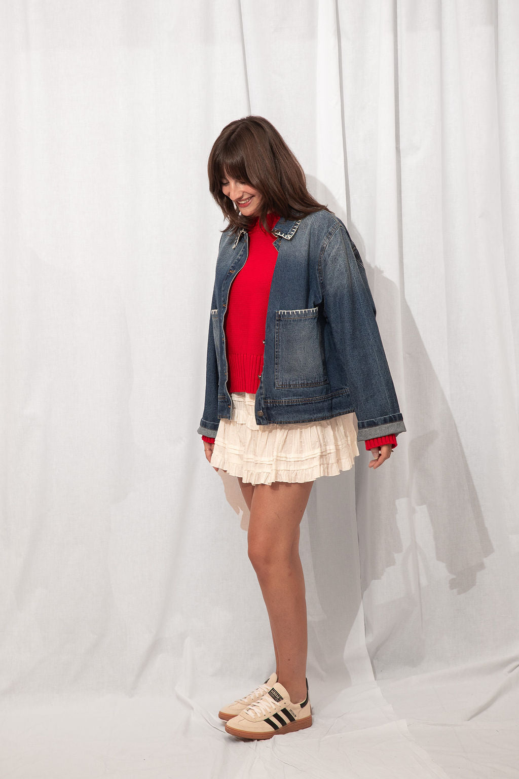The Hazel is your new everyday denim layer—with a twist. This oversized denim jacket features a standout blanket stitch in creamy thread for that little something extra. Think timeless meets artsy cool.🧵💙