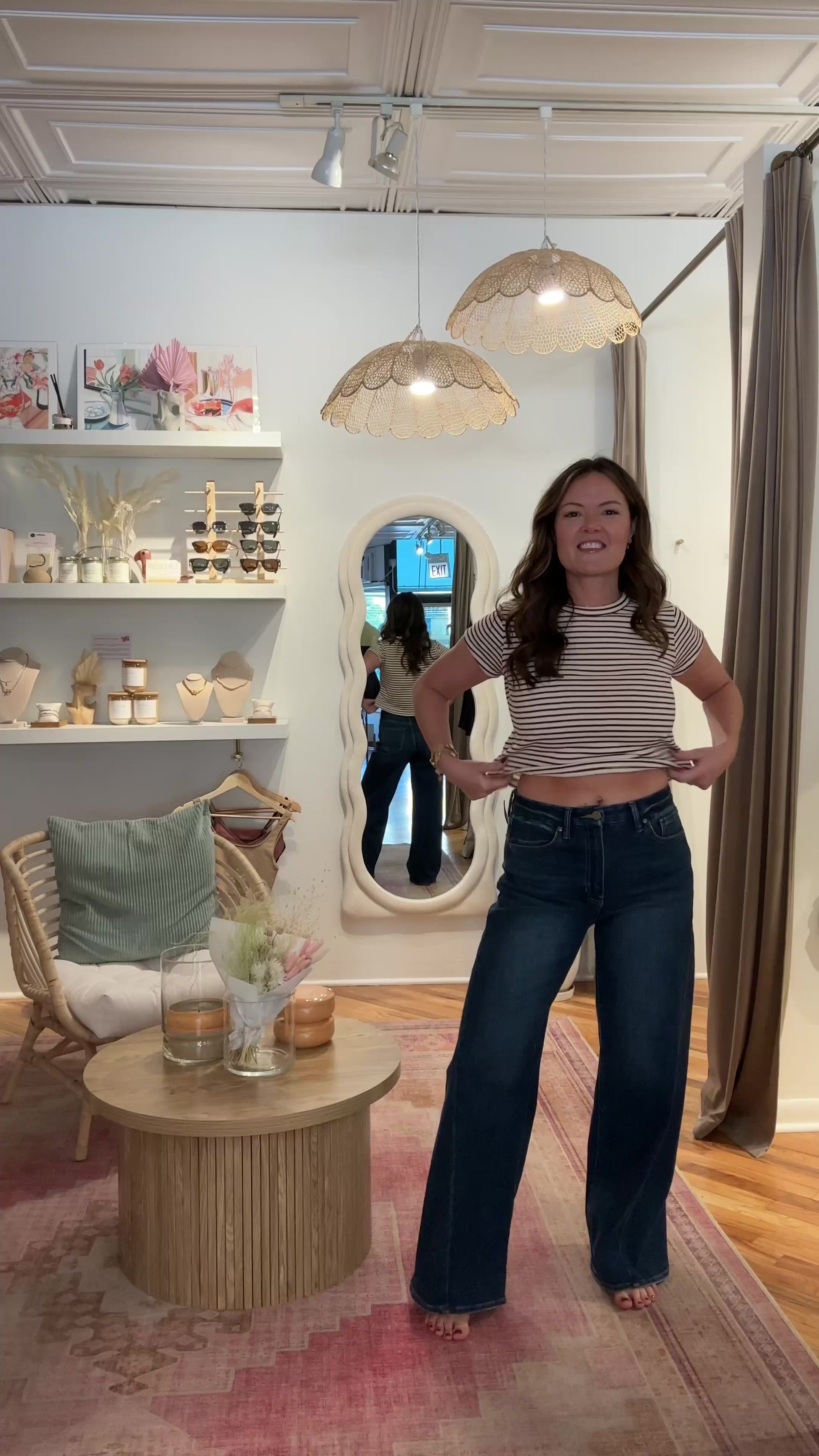 Say hello to your new go-to statement pant. These high-rise palazzos bring all the drama (in the best way) with a super flattering 11” rise, wide 31.5” inseam, and a breezy 12” leg opening. Made in the perfect shade of medium denim, they’ve got that effortless, worn-in vibe that goes with absolutely everything. Now in an updated dark denim with side seam detailing.