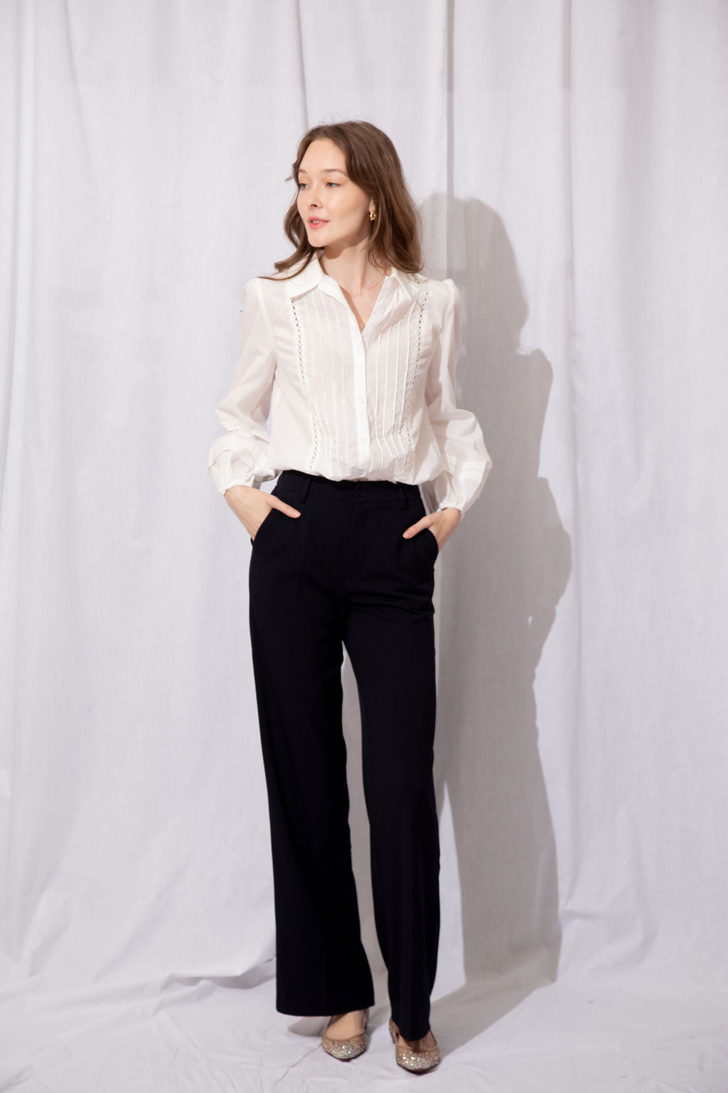 Soft, pretty, and perfectly put-together. The Julia Button Down adds a feminine twist to your warm-weather wardrobe with puff sleeves, delicate pleating, and lightweight woven fabric. Made from 100% cotton, it’s breezy but structured, polished but easy—aka your new favorite throw-on-and-go top.