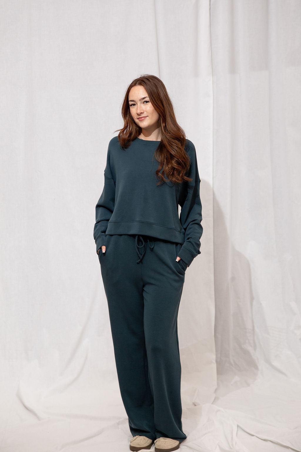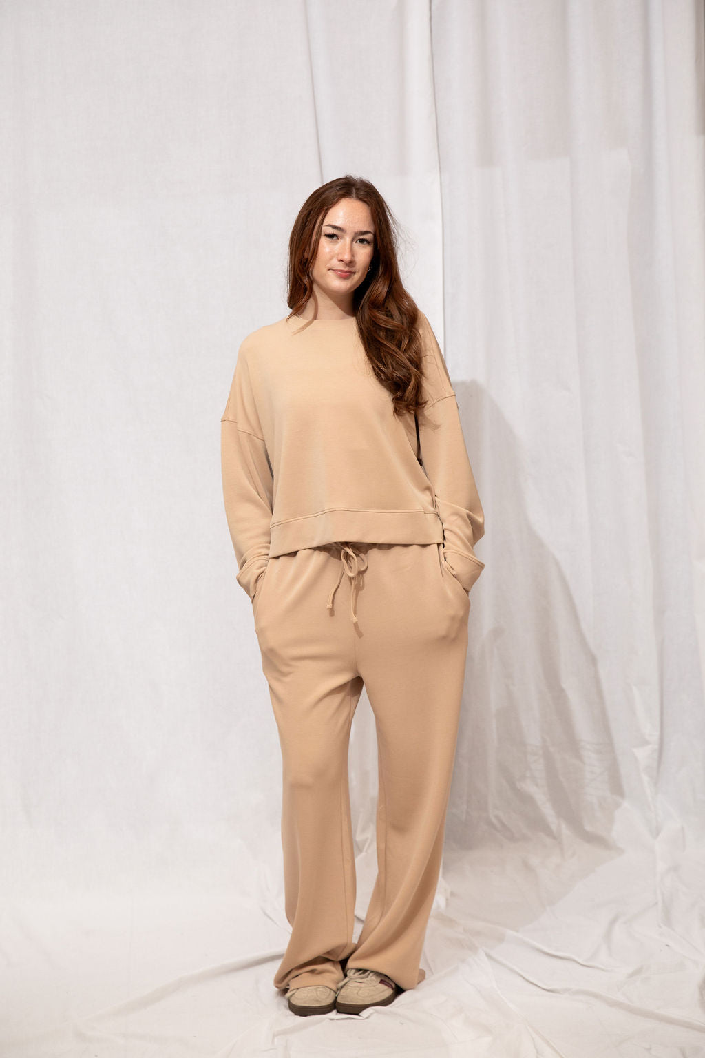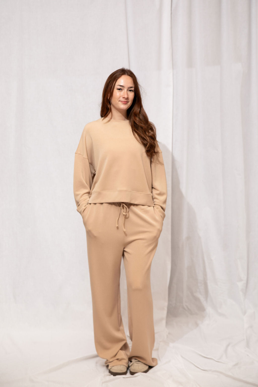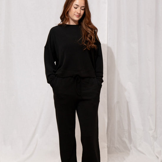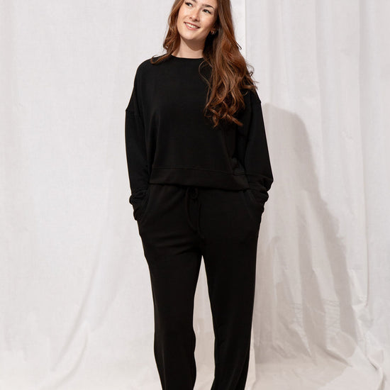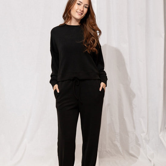 The Laguna Sweatshirt is as soft as butter π§, made from a cozy blend of modal, polyester, and spandex. Its stretchy, lightweight fabric feels like a warm hug π€, perfect for lounging or casual days out. With its relaxed fit, this sweatshirt adds a cute and comfy touch to your everyday style πΈβ¨.