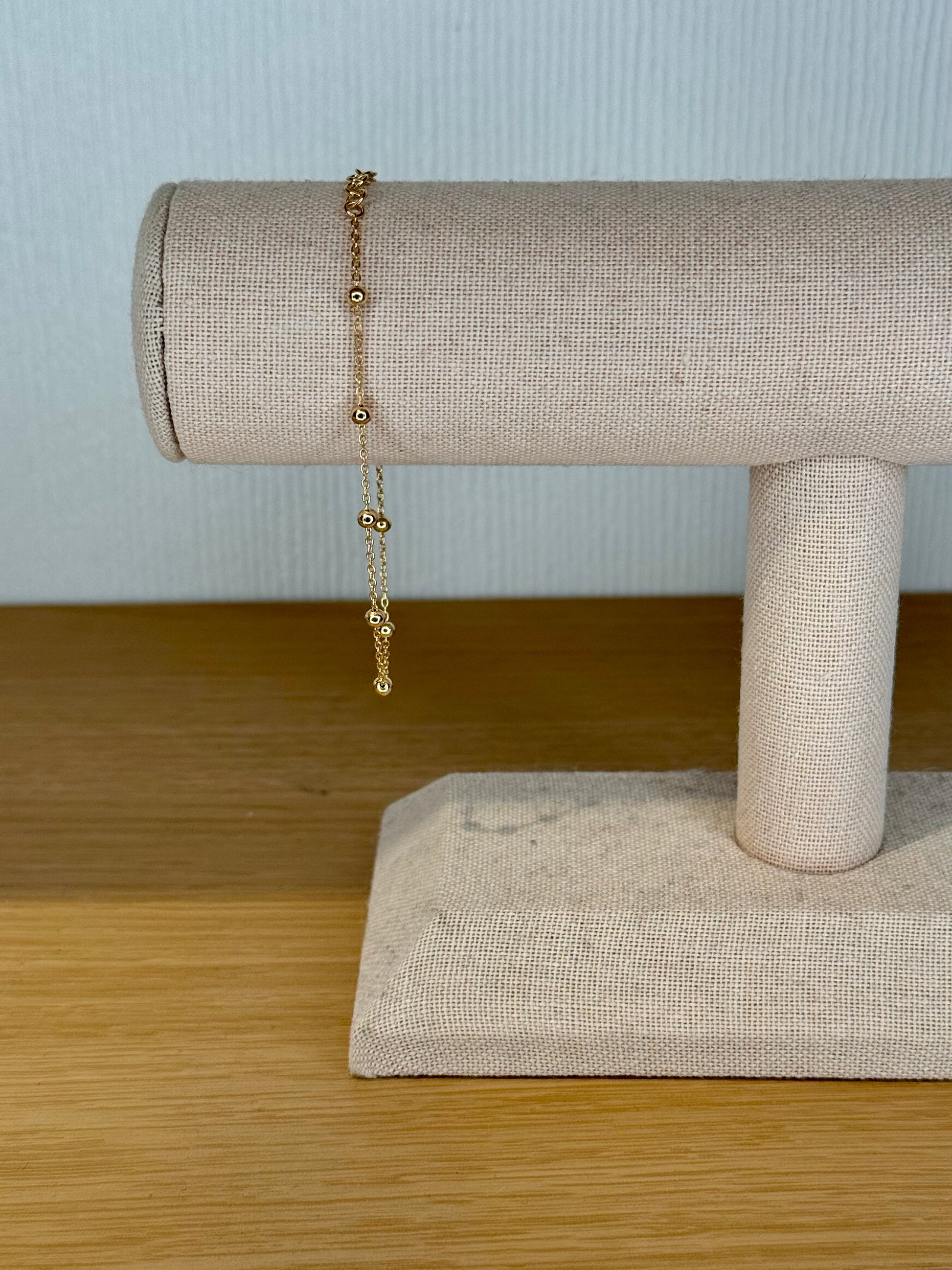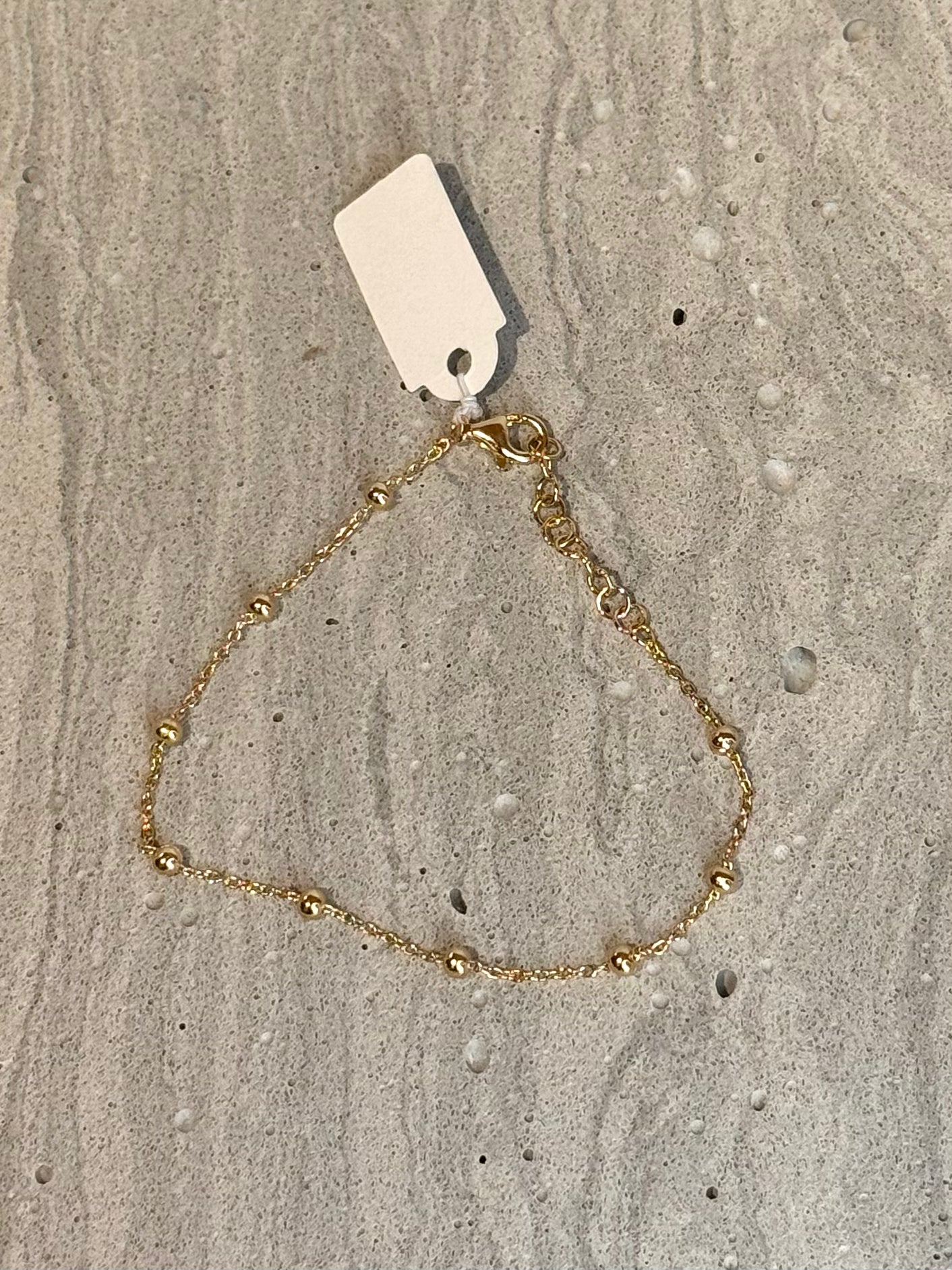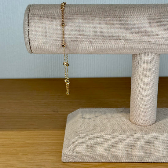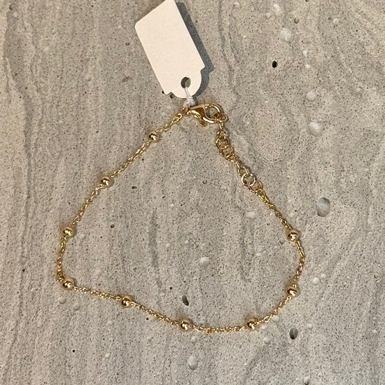 The Lucette Gold Ball Bracelet is a sterling silver, gold plated beauty. Wear it on its own to let the gold balls create a shimmer effect that catches every eye. Perfect as a great layering piece, it seamlessly complements any outfit. For a personalized touch, pair it with charms from our charm bar to craft a truly unique look. This classic necklace is both cute and versatile, making it a delightful addition to your collection.