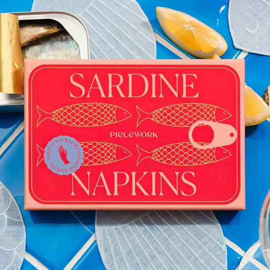 Here fishy, fishy! We’ve fallen hook, line, and sinker for our set of sardine cocktail napkins. These swimmers — made from 100% linen — are truly the catch of the day. Comes in picture-perfect packaging designed to resemble a sardine tin.