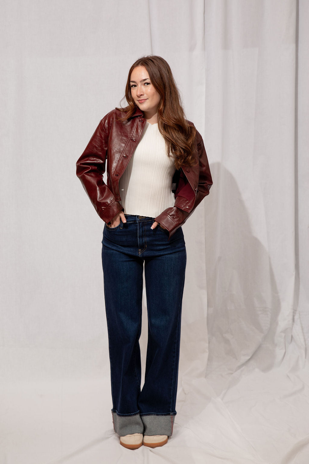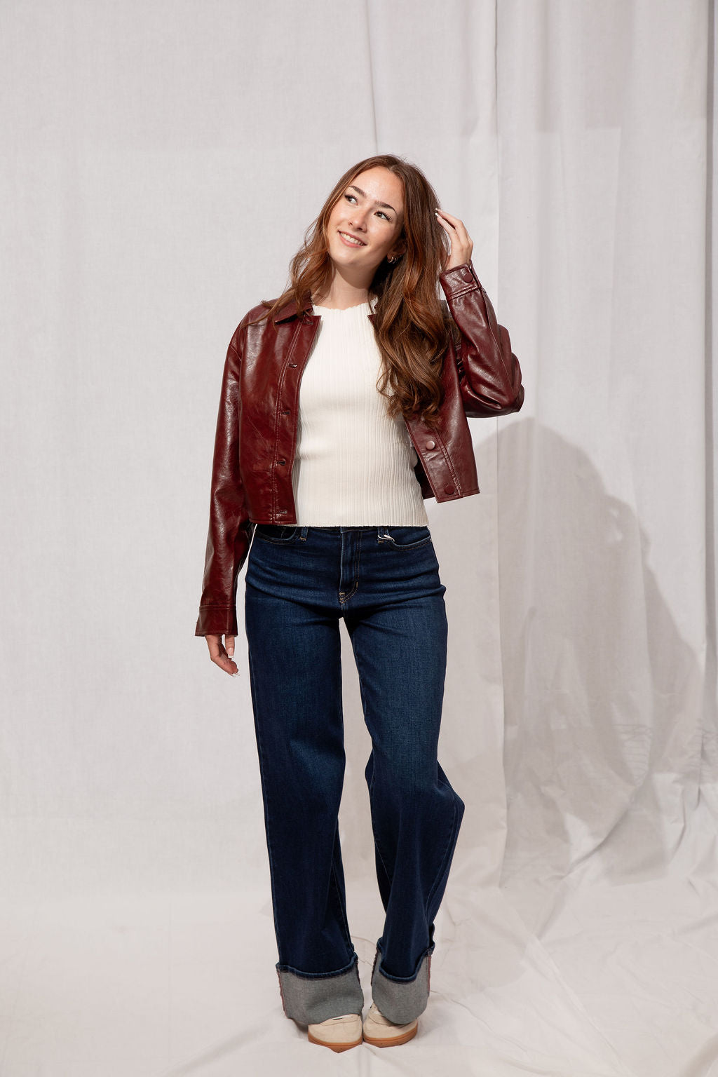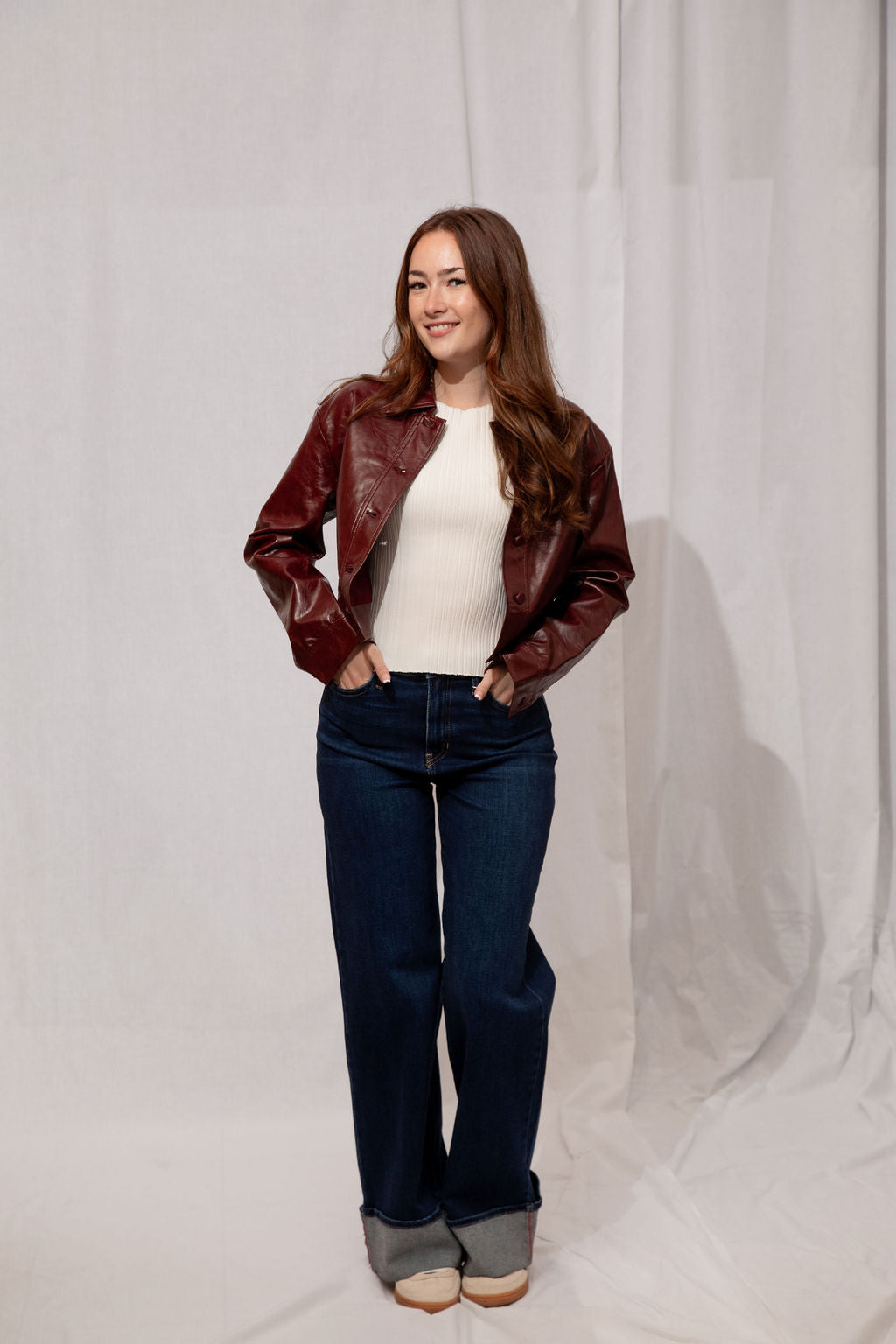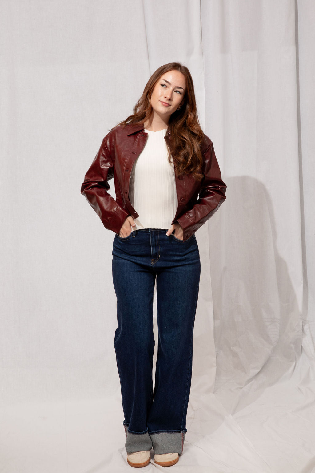 Your new statement jacket just arrived 🔥 In a gorgeous burgundy, Naya is all about turning heads and adding that perfect edge to literally any outfit. Pair with jeans, skirts, or dresses—she plays nice with everything.