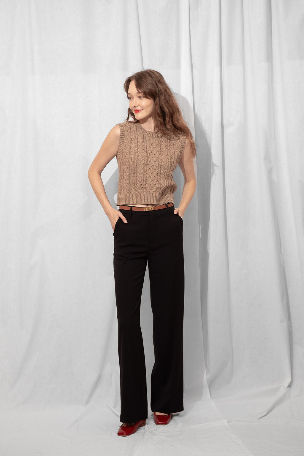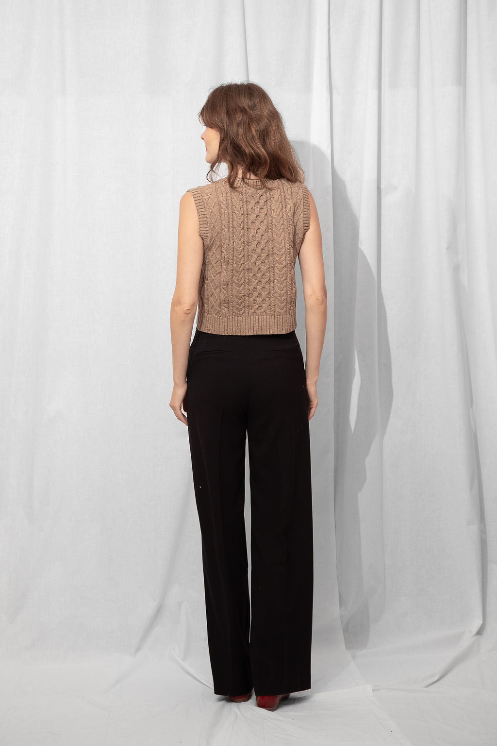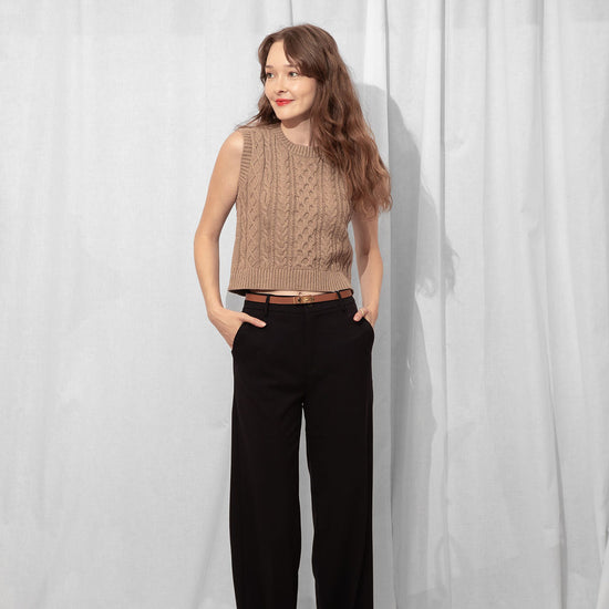 Your new layering BFF ☕ The Sunna Knit Vest in a rich mocha hue is a timeless staple with modern charm. Made from 100% cotton in a cozy cable knit, it's soft, midweight, and just the right amount of slouchy. Wear it solo with denim or layered over a crisp tee or button-up—she’s versatile like that.