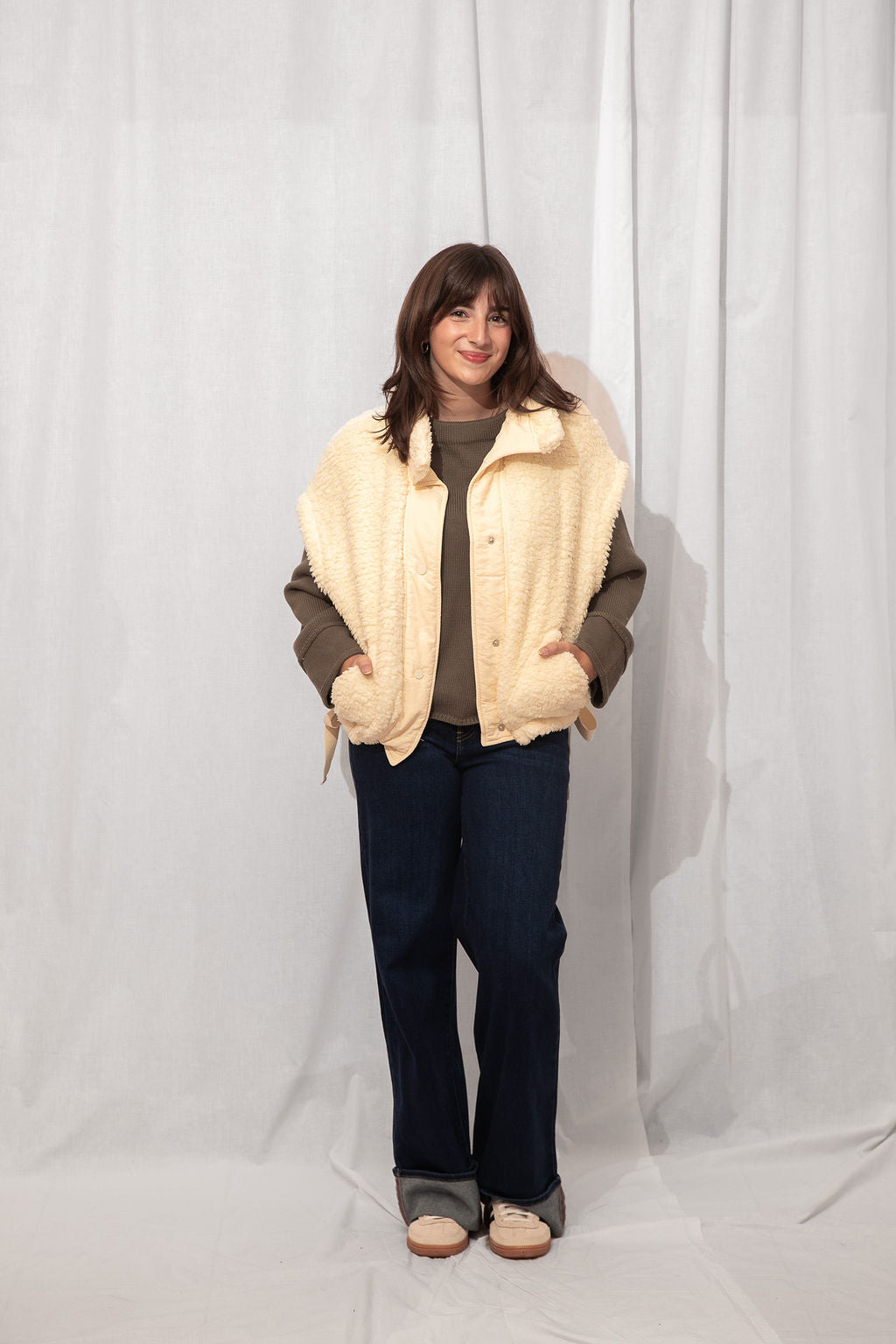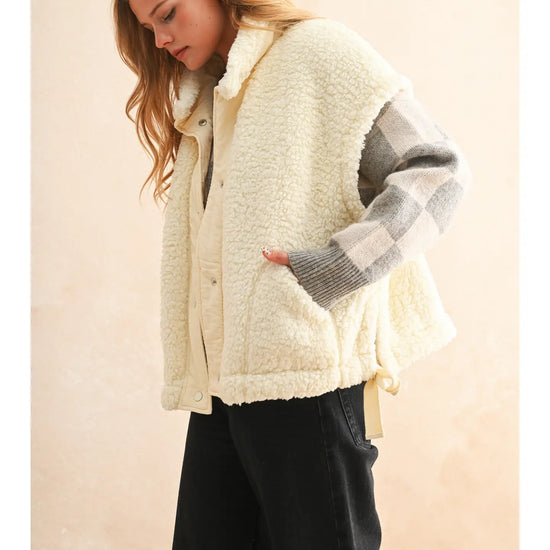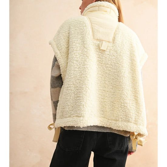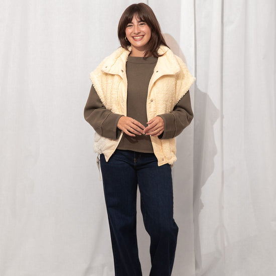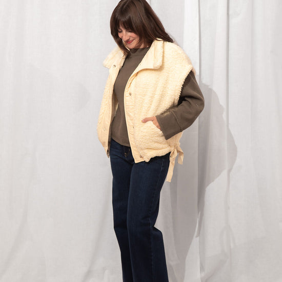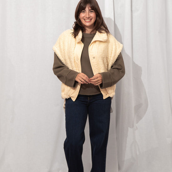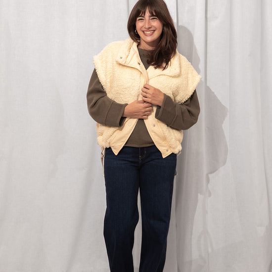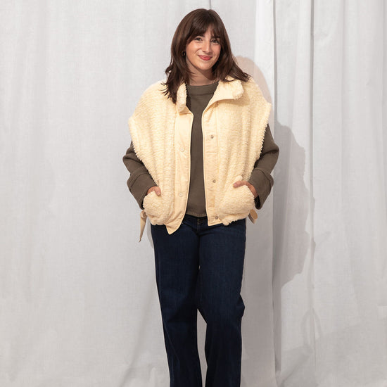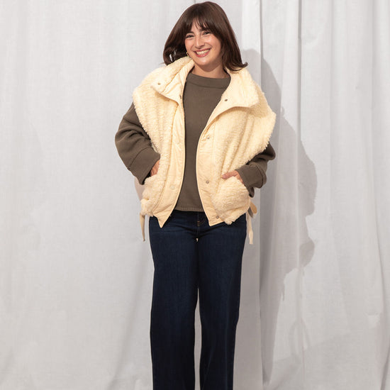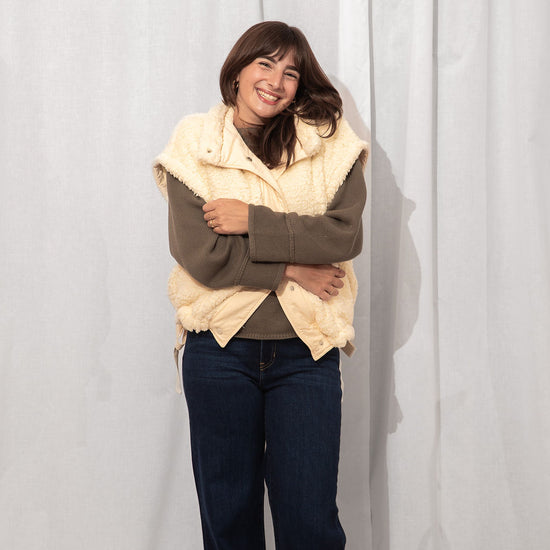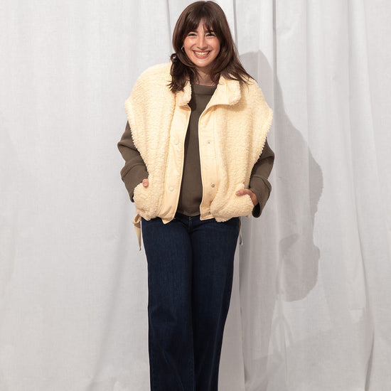 The coziest layer you didn’t know you needed. Made from ultra-soft teddy fabric in the dreamiest cream shade, this utility-style vest is fall's best friend.