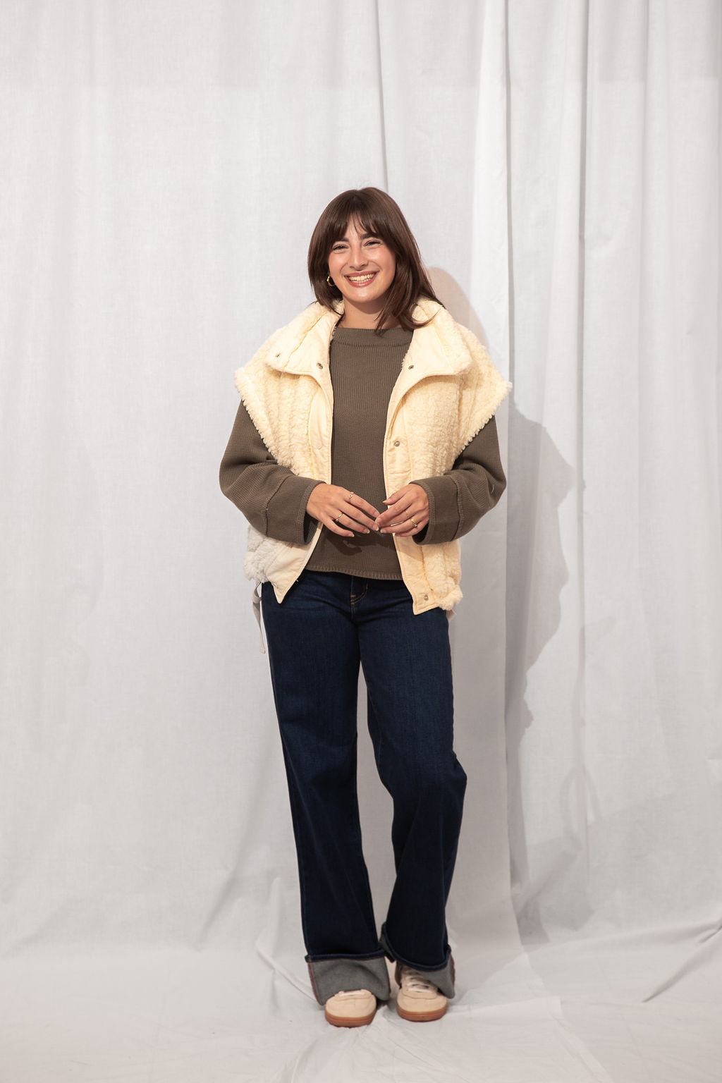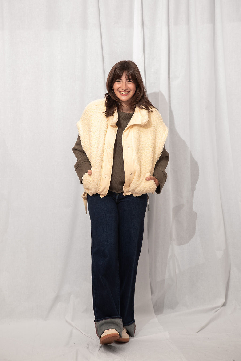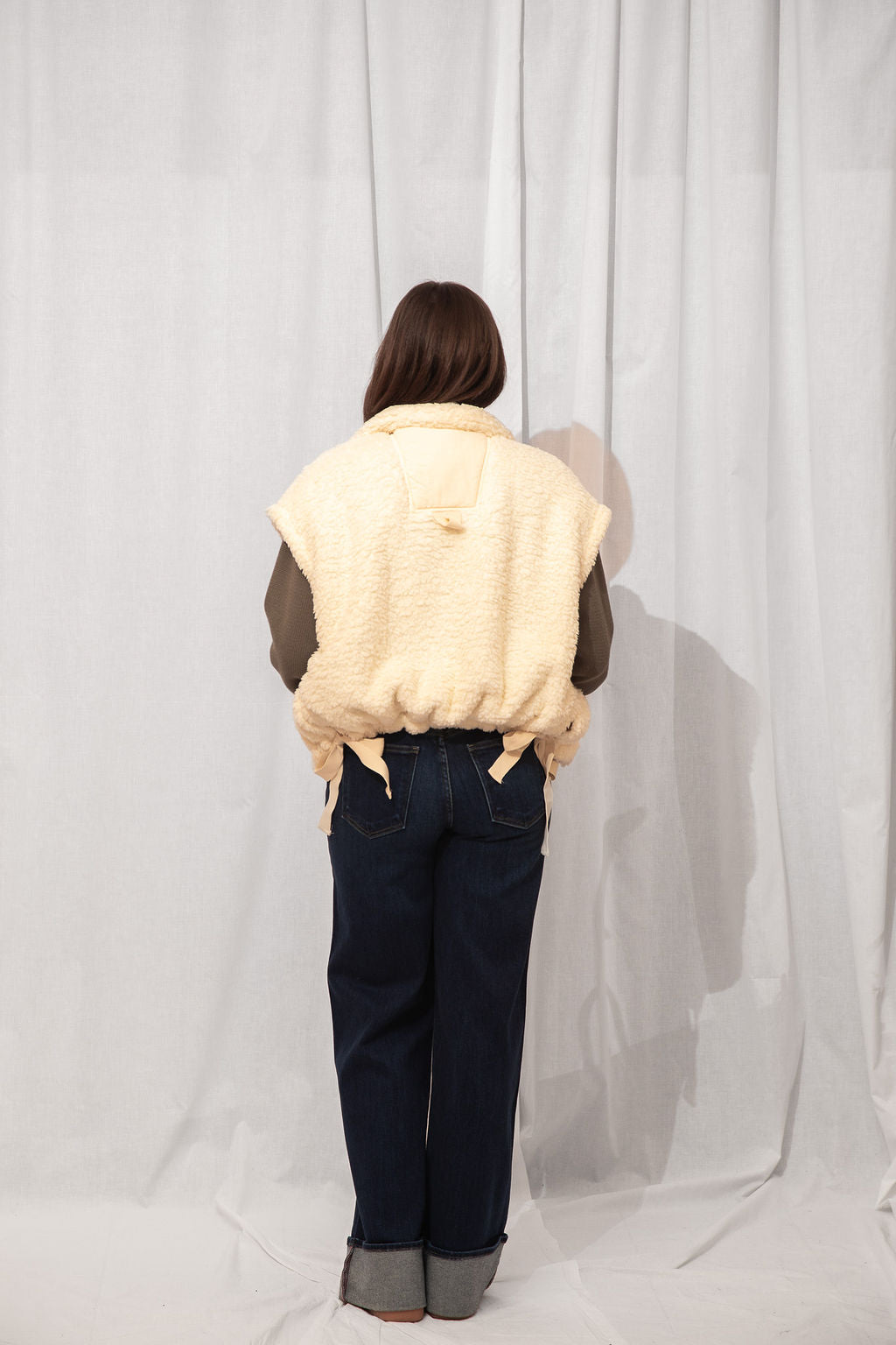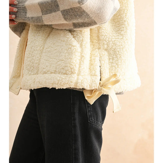 The coziest layer you didn’t know you needed. Made from ultra-soft teddy fabric in the dreamiest cream shade, this utility-style vest is fall's best friend.