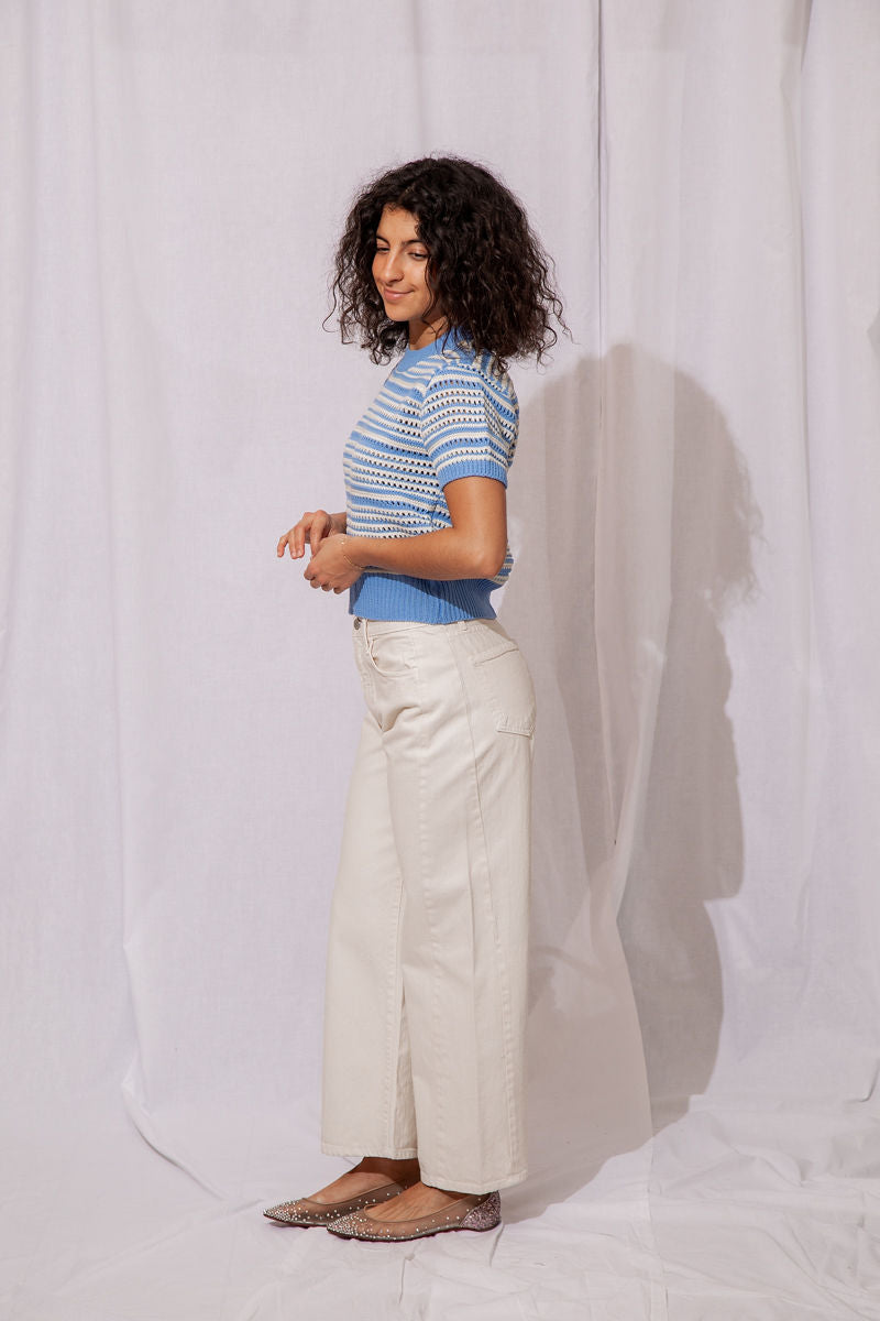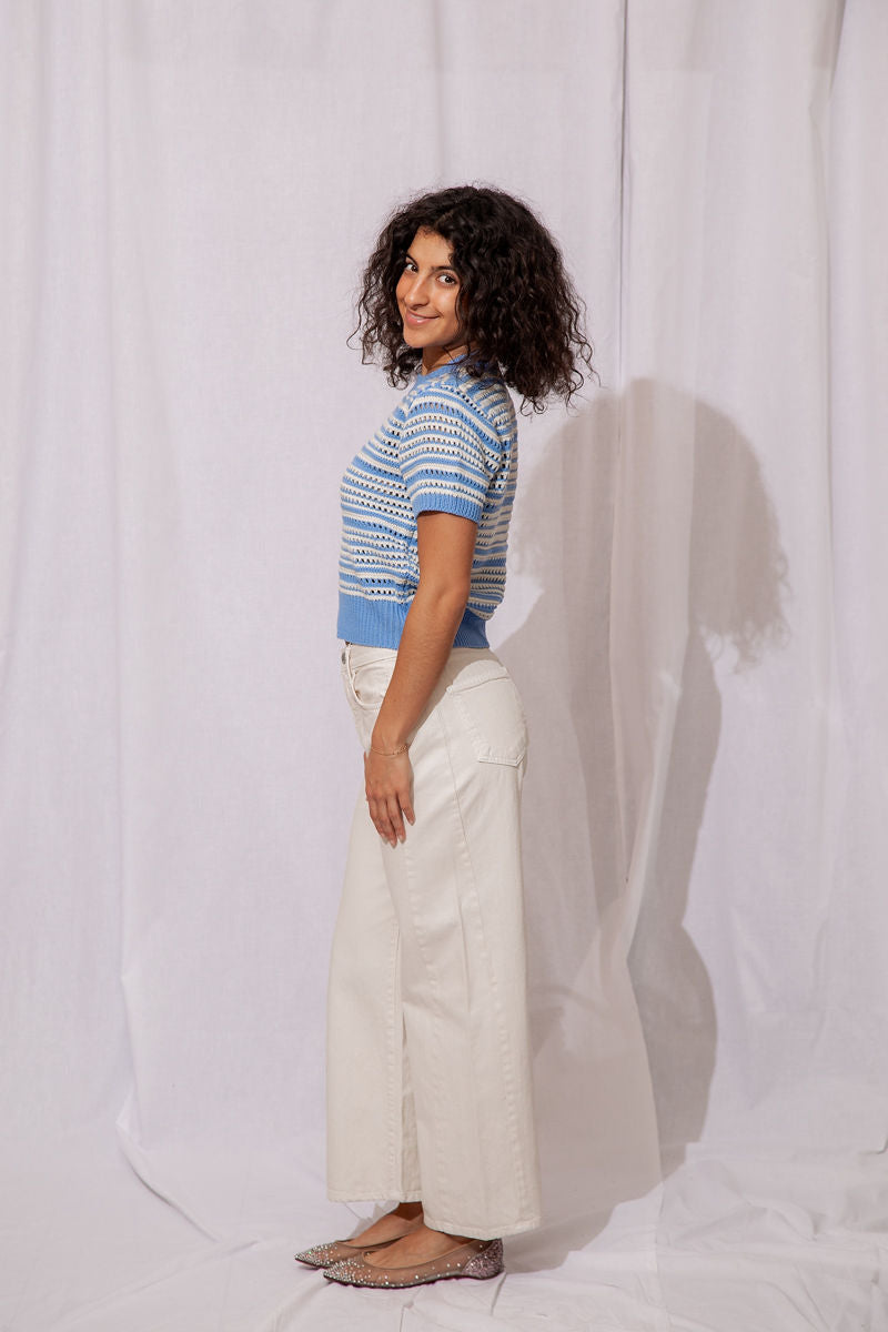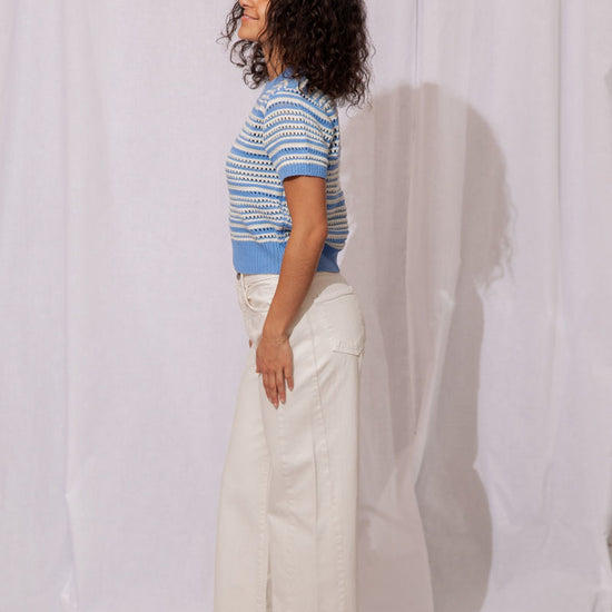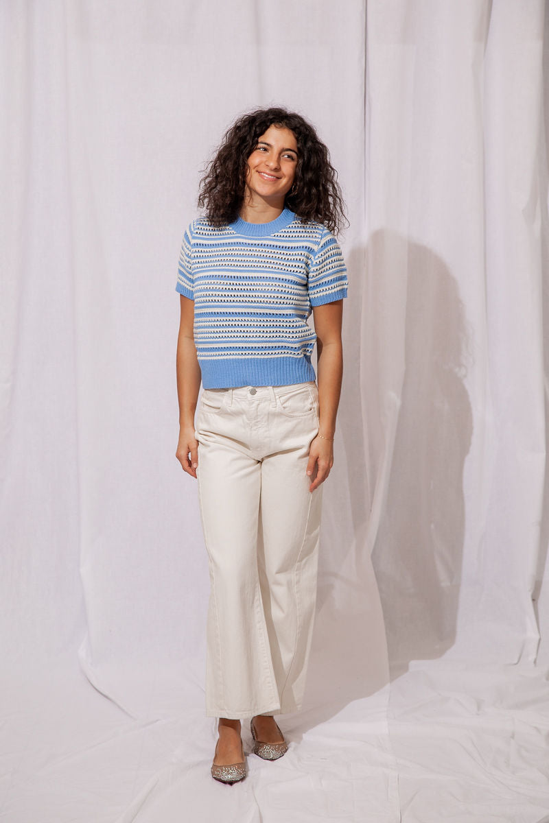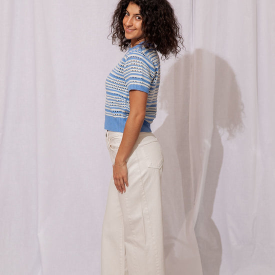 The Wren Eyelet Sweater is the perfect lightweight knit to take you from winter to spring in style!
