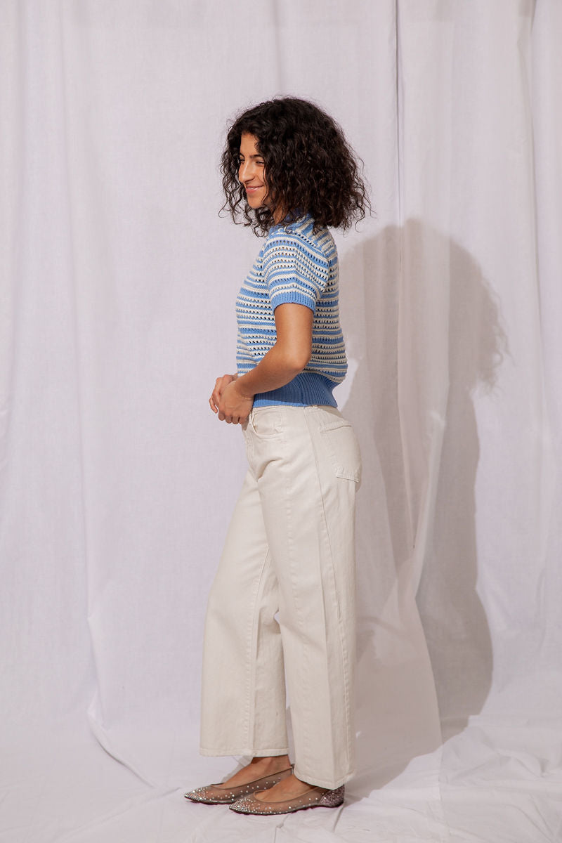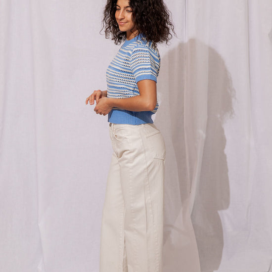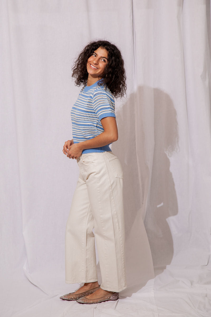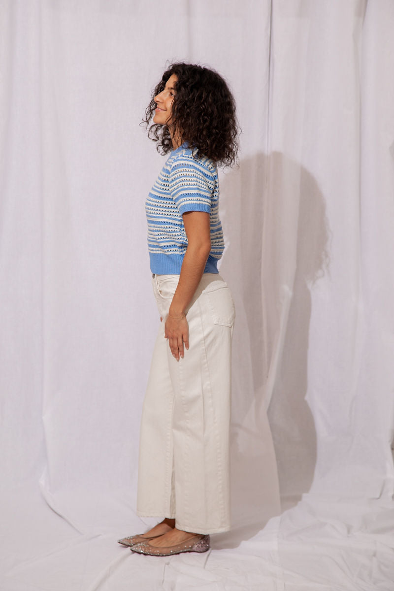 The Wren Eyelet Sweater is the perfect lightweight knit to take you from winter to spring in style!